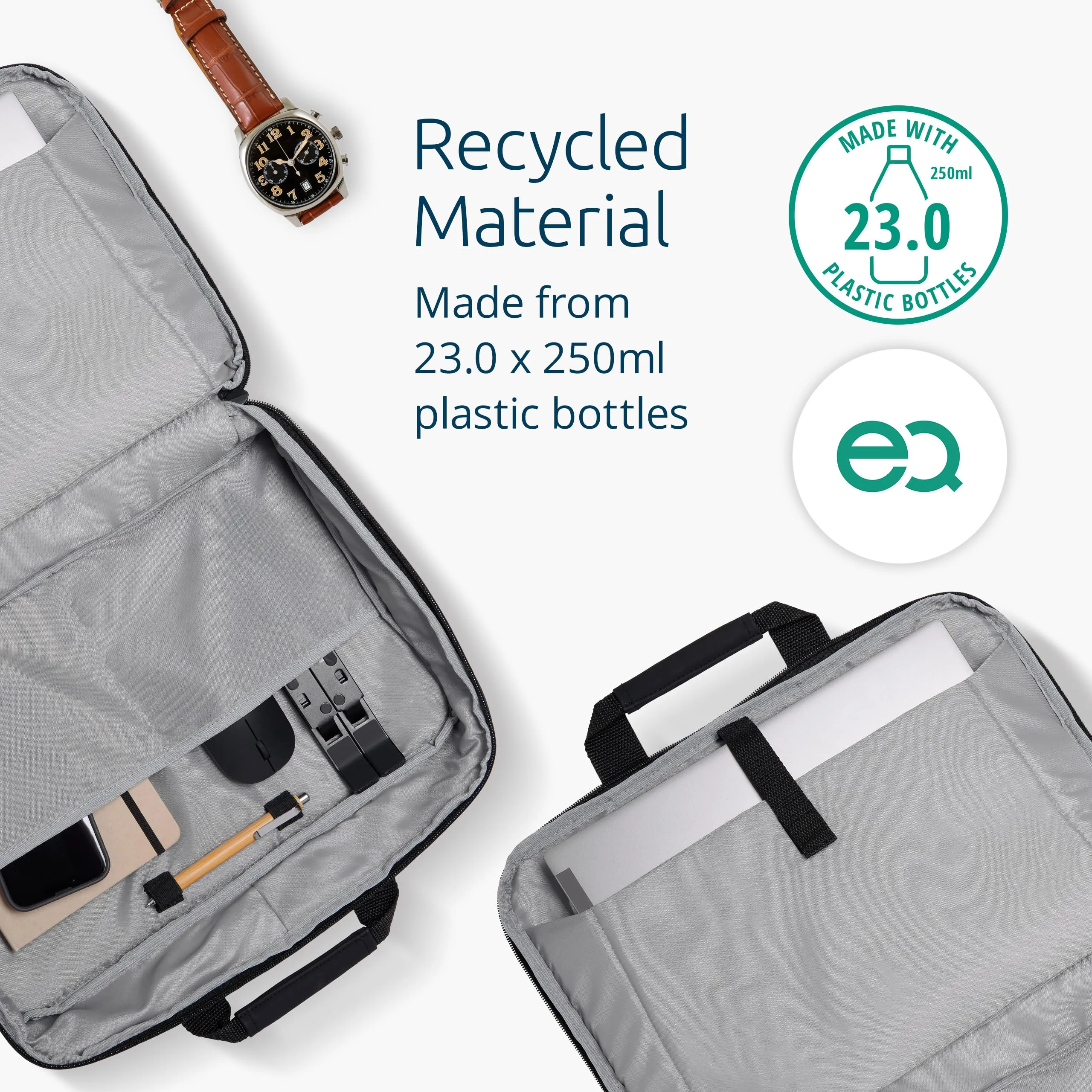 OVERVIEW: For the eco-conscious commuter, the Eco-Friendly 16-Inch Laptop Carrying Case offers a travel-friendly solution made from sustainable materials. Constructed using the equivalent of 10.4 plastic bottles, this case incorporates 32.7% post-consumer recycled (PCR) polyester. It effectively accommodates laptops up to 16 inches and includes a padded compartment specifically designed for your laptop, as well as a zippered front compartment for swift access. Multiple pockets are available for documents and accessories, ensuring organization on the go.
