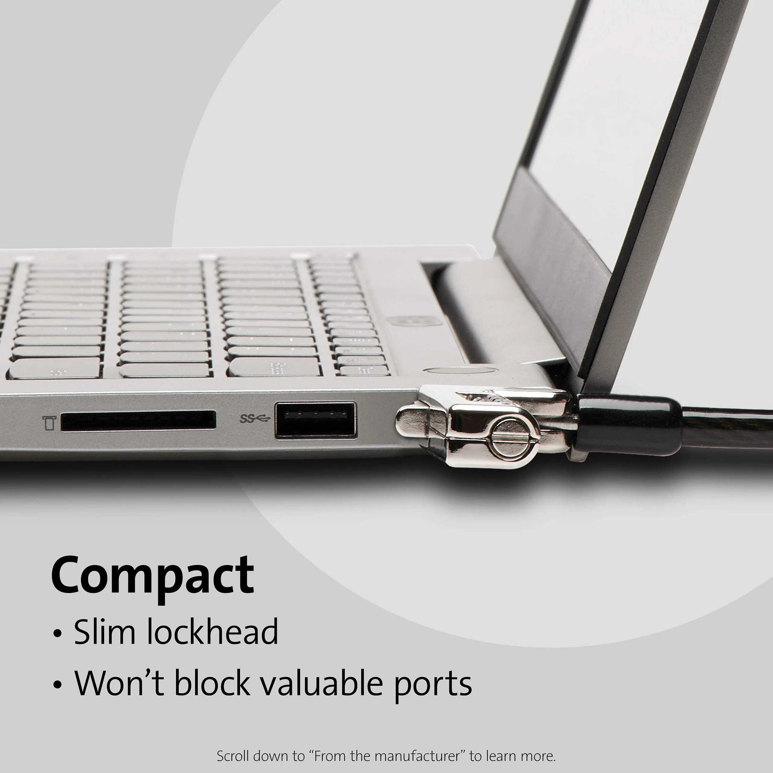 HEAD ALLOWS THE LAPTOP TO LIE FLAT AND STABLE.SLIM LOCKHEAD ALLOWS THE LAPTOP TO