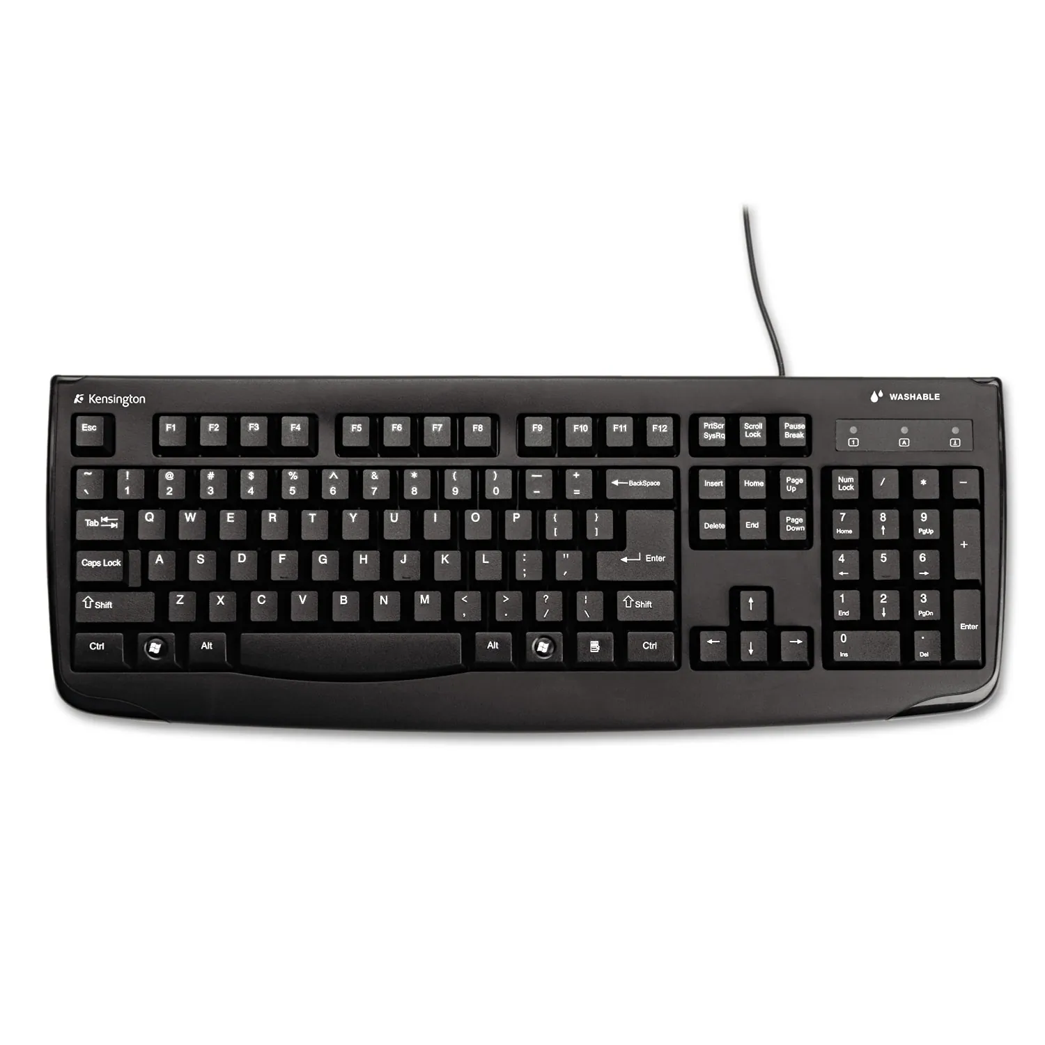 Kensington Pro Fit K64407US USB External Washable Keyboard - Wired - Black