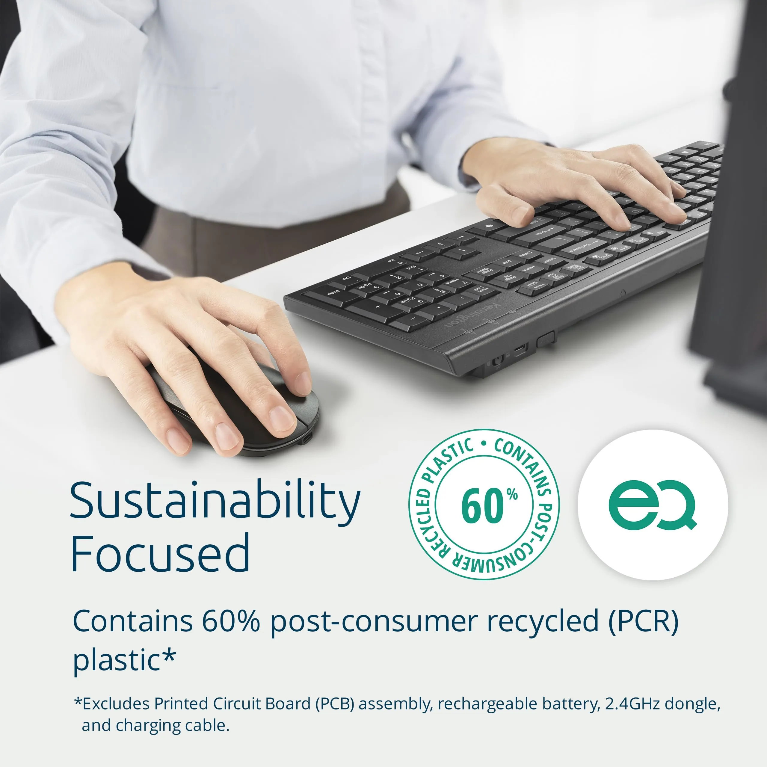 The KM270 EQ Wireless Keyboard and Mouse Set offers an eco-friendly, efficient solution for your desktop needs. With at least 60% post-consumer recycled plastic, this set does not compromise on performance while being environmentally conscious.
