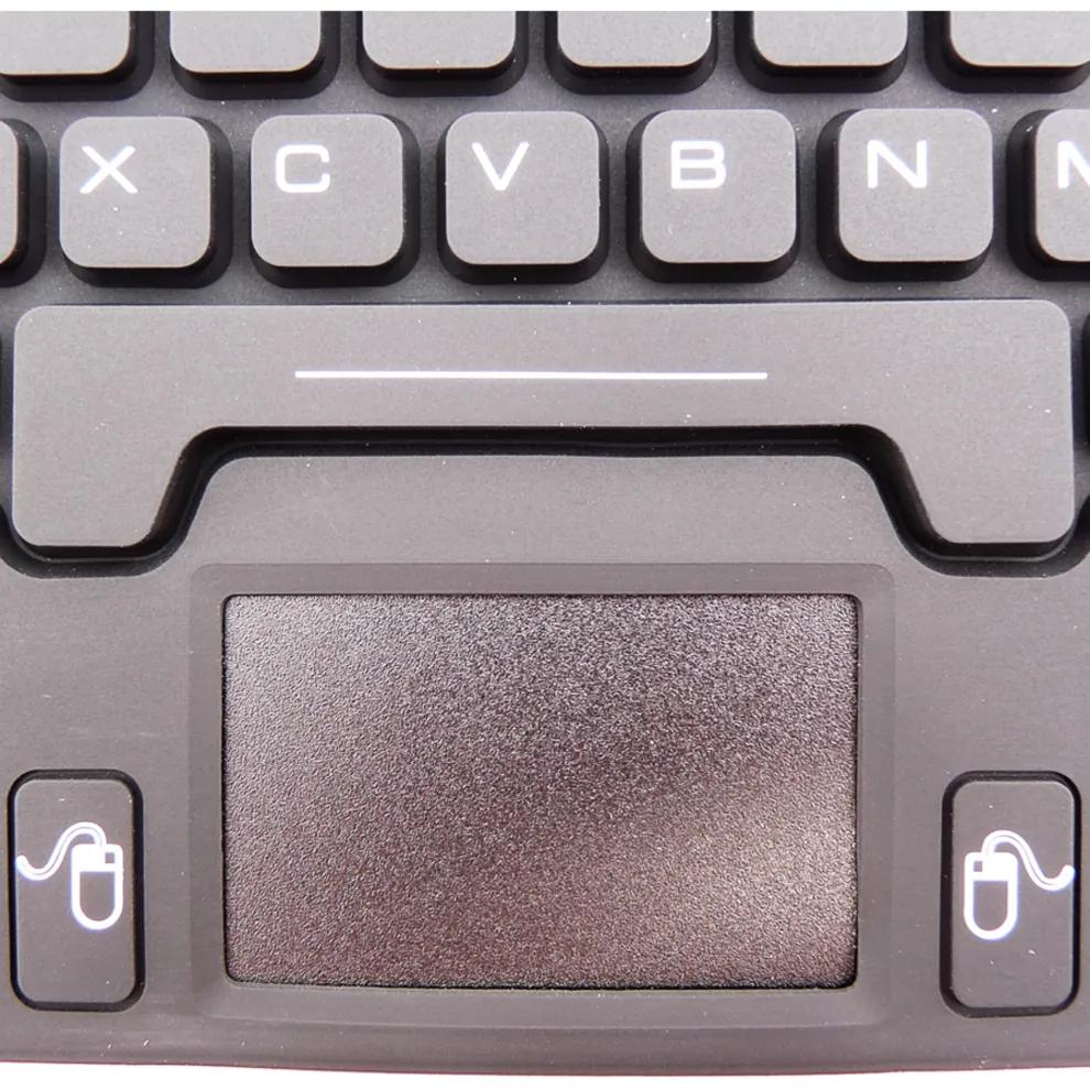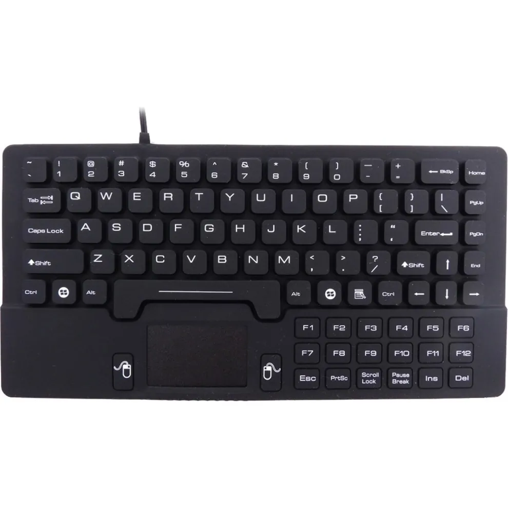 This waterproof silicone mini keyboard features an IP68 rating, making it resistant to dust and water. Perfect for various environments, it includes a built-in touchpad for easy navigation, ensuring a compact and functional design suitable for home, office, or industrial use.