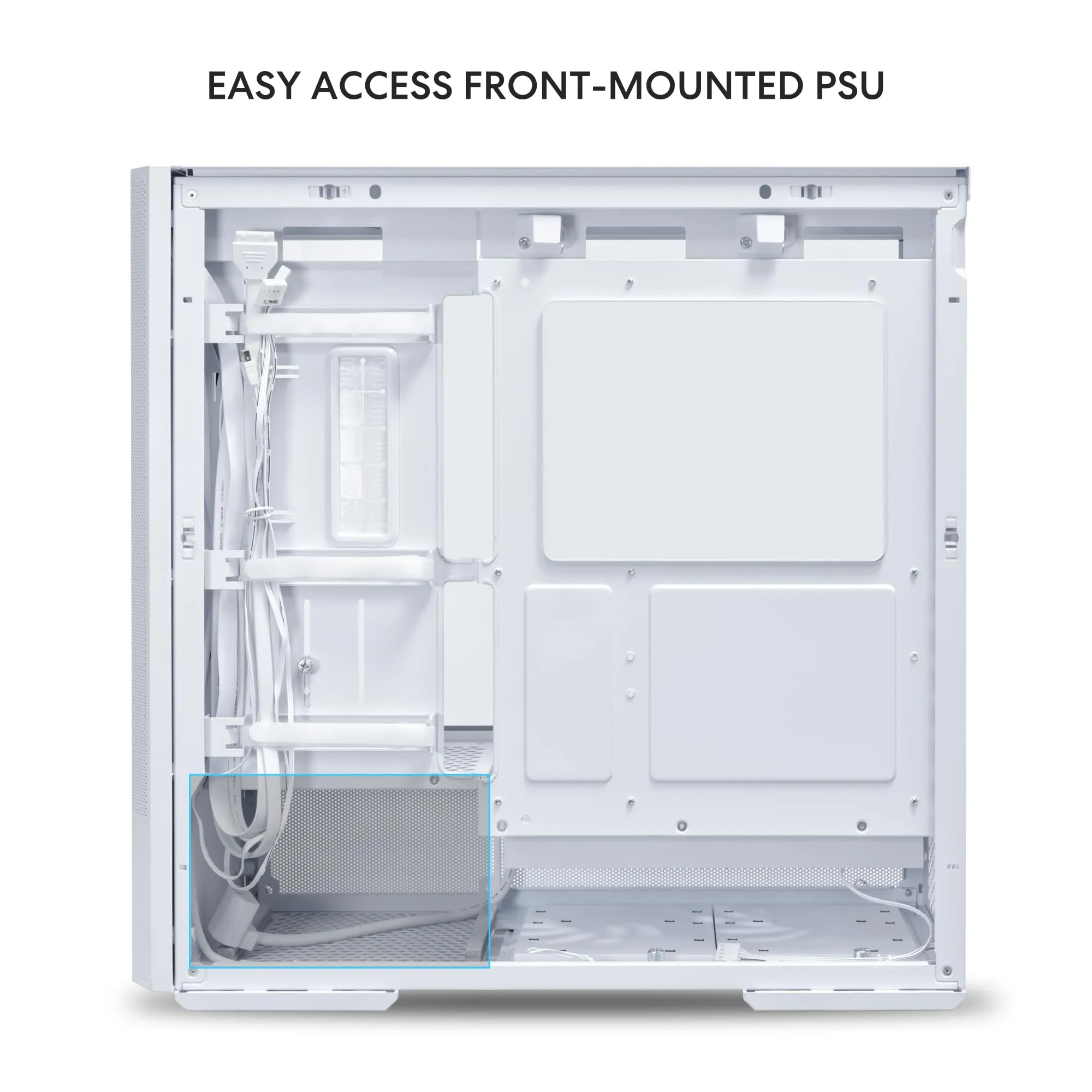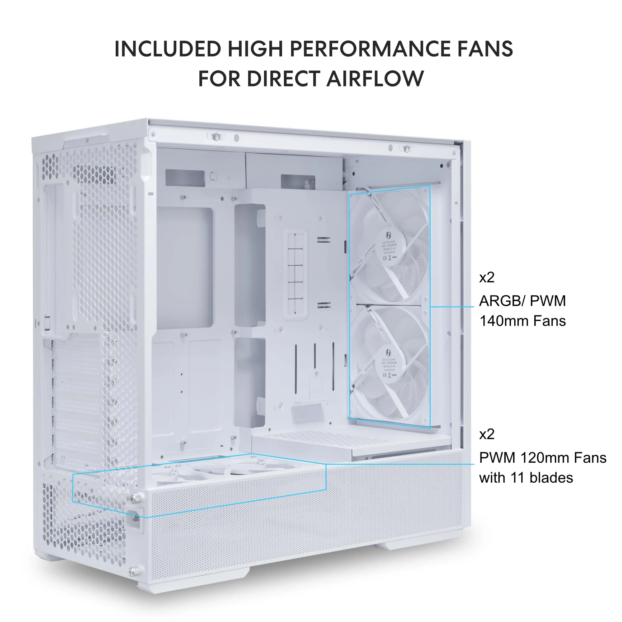 Designed for optimal airflow, the LANCOOL 207 includes pre-installed fans and supports additional cooling options to keep your system running efficiently. Its versatility allows for installation of up to two 3.5” HDDs or two 2.5” SSDs, providing great flexibility for storage.