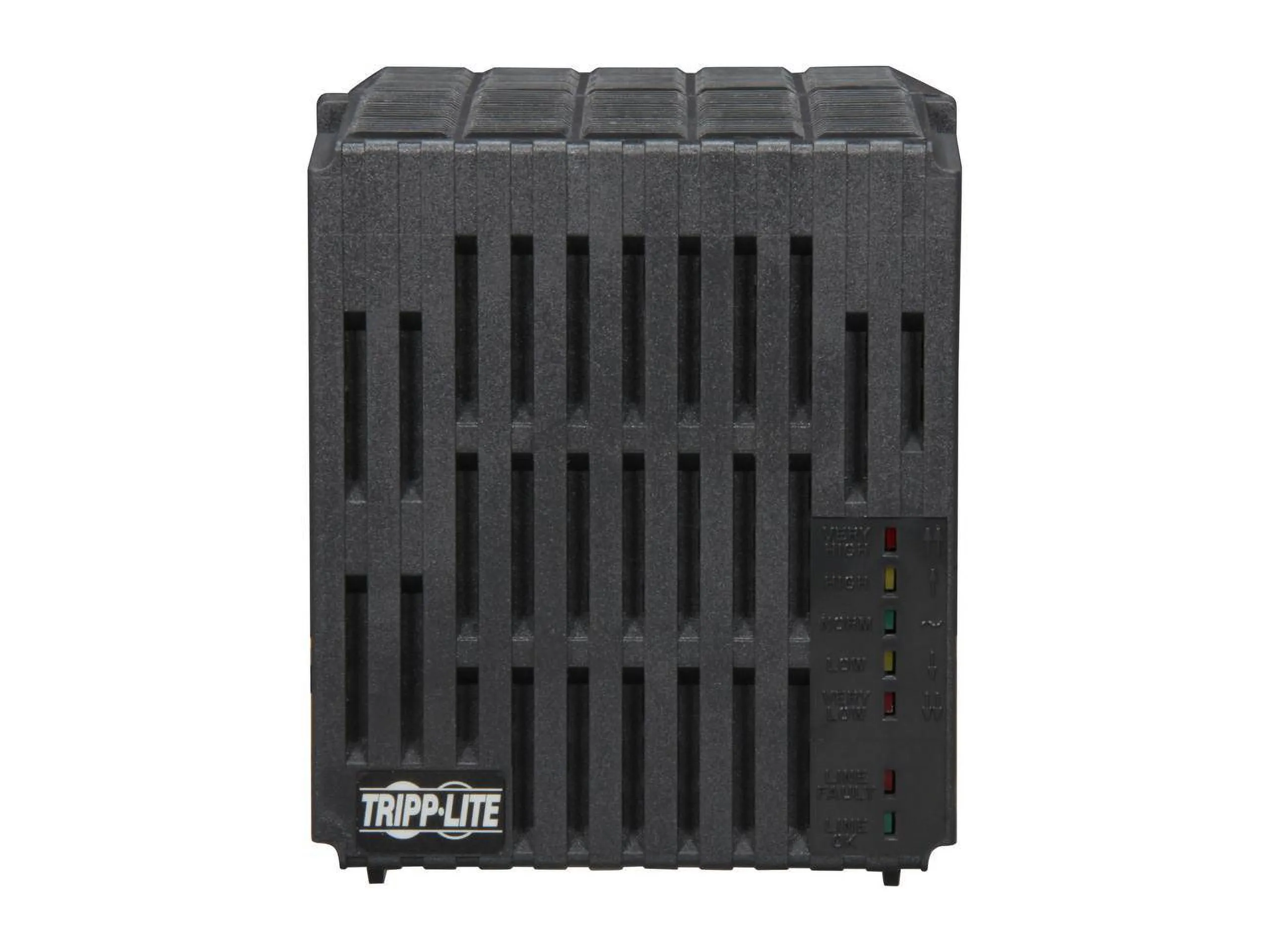 The Tripp Lite LC1200 1,200 Watt 120-Volt Line Conditioner adjusts under- and overvoltages to provide safe, computer-grade AC power. The automatic voltage regulation (AVR) offers 3 levels of voltage stabilization that corrects undervoltages as low as 89 volts and overvoltages as high as 147 volts back to regulated 120-volt nominal power. Providing optimum voltage conditions not only extends the life of your equipment, but also keeps your equipment working through brownouts and prolonged overvoltage conditions. The network-grade surge suppression prevents even the strongest spikes from inflicting damage, data loss or corruption and audio/video performance problems on your connected equipment. Noise filtering removes potentially disruptive line noise. Just connect the space-saving NEMA 5-15P right-angle plug with 7 ft. cord to an AC power source, and plug up to 4 devices into the NEMA 5-15R outlets. You can monitor AC power, incoming voltage level and AC line status using the 7 diagnostic LEDs on the front panel. The compact LC1200 will fit comfortably into your computer or home theater setup!