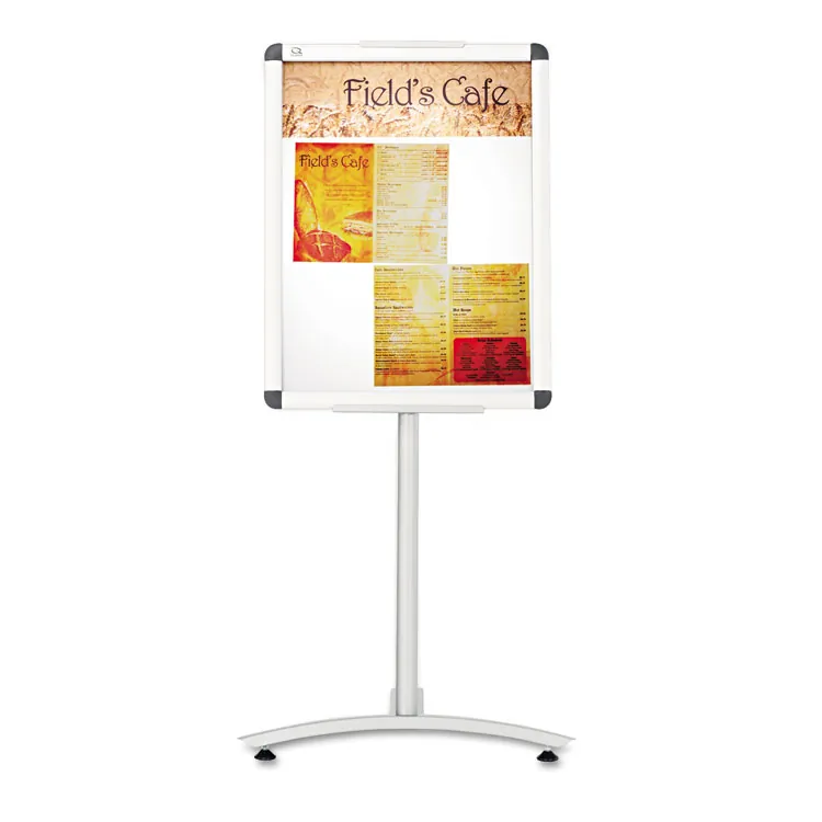 Enhance your lobby or reception area with this stylish and functional clip frame sign stand. Measuring 24 x 18 inches, this pedestal sign is perfect for displaying important information or promotions. The frame is made of durable aluminum, ensuring longevity and stability. Standing at 54 inches high, it provides clear visibility for passersby.