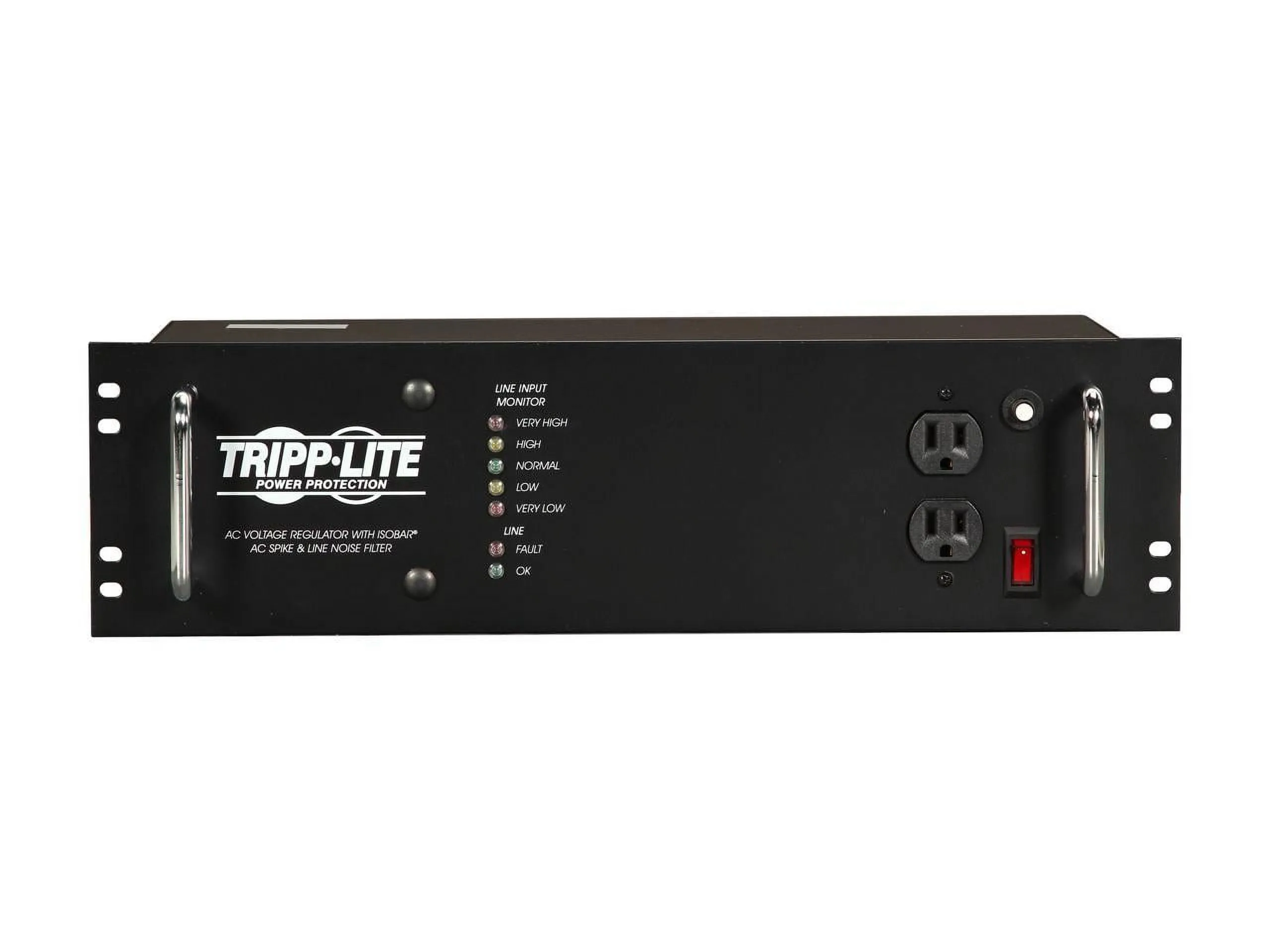 - Maintains usable 120V (10 percent /-12percent) nominal output over an input range of 89 to 147V - Protects sensitive electronics, computer accessories and home theater equipment from power-related damage and performance problems - Extends the useful life of connected equipment by providing optimum voltage conditions for enhanced efficiency and cooler internal operating temperatures - Convenient 19 inch rackmount format installs in any 2 or 4 post equipment rack using 3 rack spaces (3U) - Three levels of voltage stabilization offer targeted response to overvoltages, undervoltages and severe brownouts - Input voltages over 128V are reduced by 9.6percent - Input voltages between 103 and 112V are boosted by 8.9 percent - Input voltages below 102 V are boosted by 18.8 percent - 2400 watts output power rating supports 120V loads up to 20 amps - Network grade AC surge suppression - Premium EMI/RFI noise filtering prevents equipment interaction, system interference, lockups and other power-related audio and video artifacts - 7 diagnostic LEDs indicate input voltage levels, surge suppression and line status - 14 protected NEMA 5-15R outlets - Two built-in isolated filter banks prevent noise interaction between connected devices - Black color outlets offer basic filtering, white color outlets offer enhanced filtering for the most sensitive connected devices - 12 foot AC power cord with NEMA5-15P input plug Unit Dimensions (HWD/in) - 5.25 x 19 x 7.75 Unit Dimensions (HWD/cm) - 13.3 x 48.3 x 19.7 Form factors supported - Standard 19 inch rack mount format using 3 rack spaces (3U) Material of construction - Steel