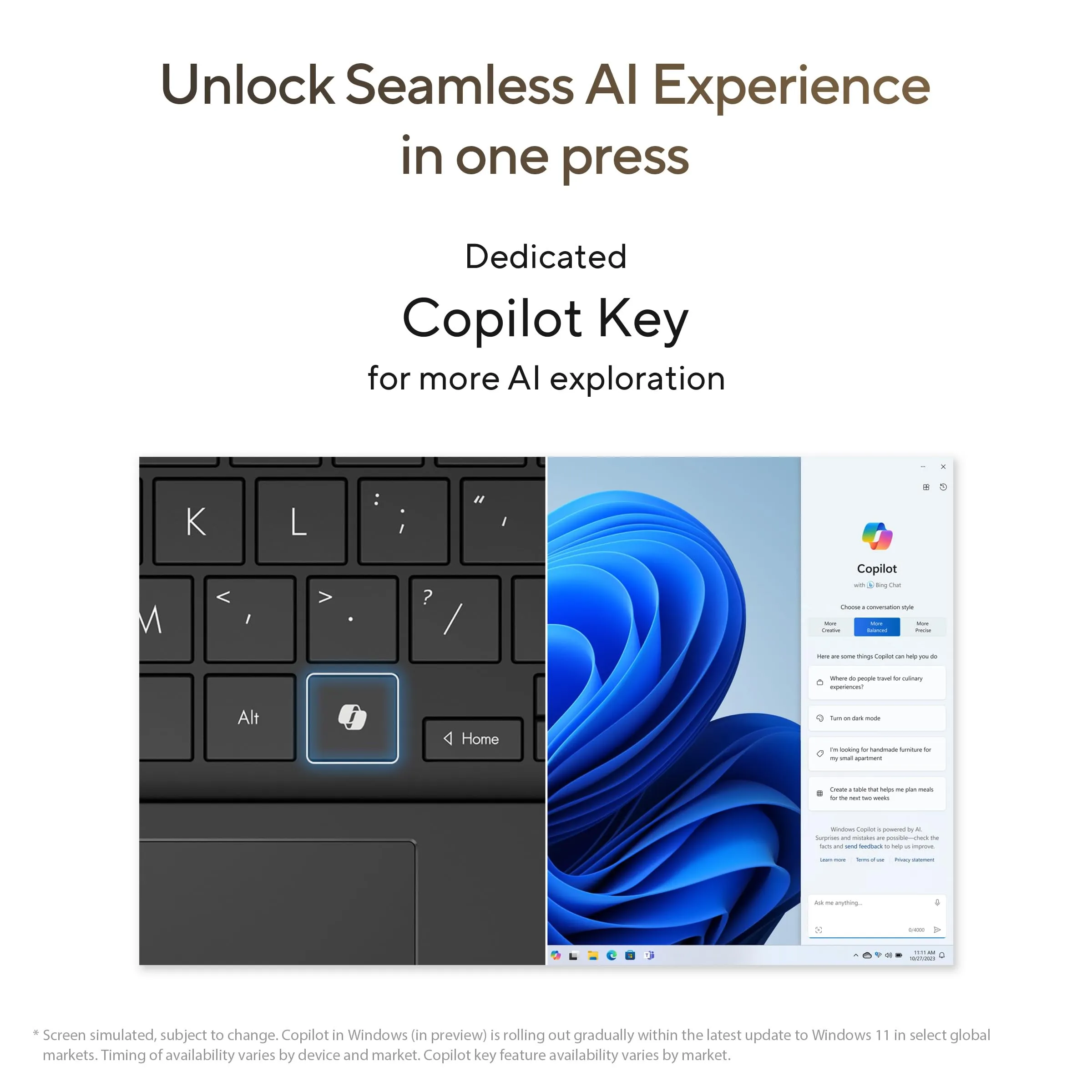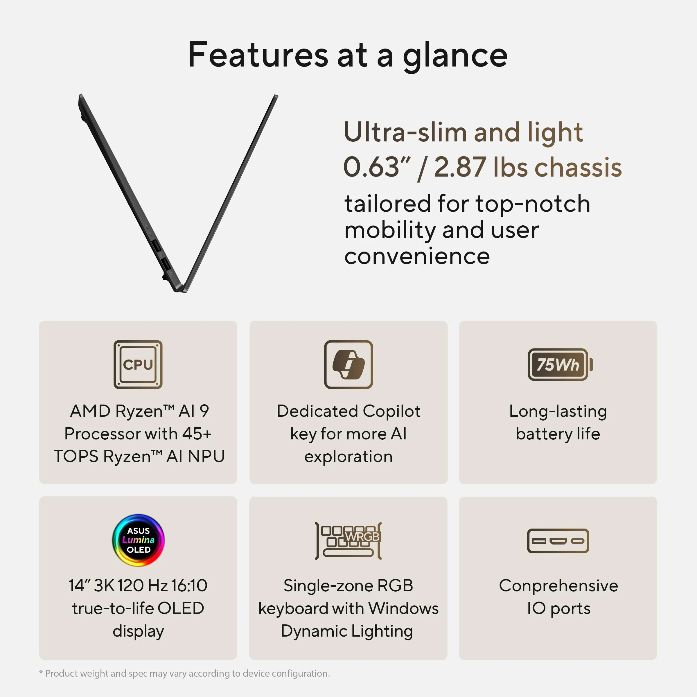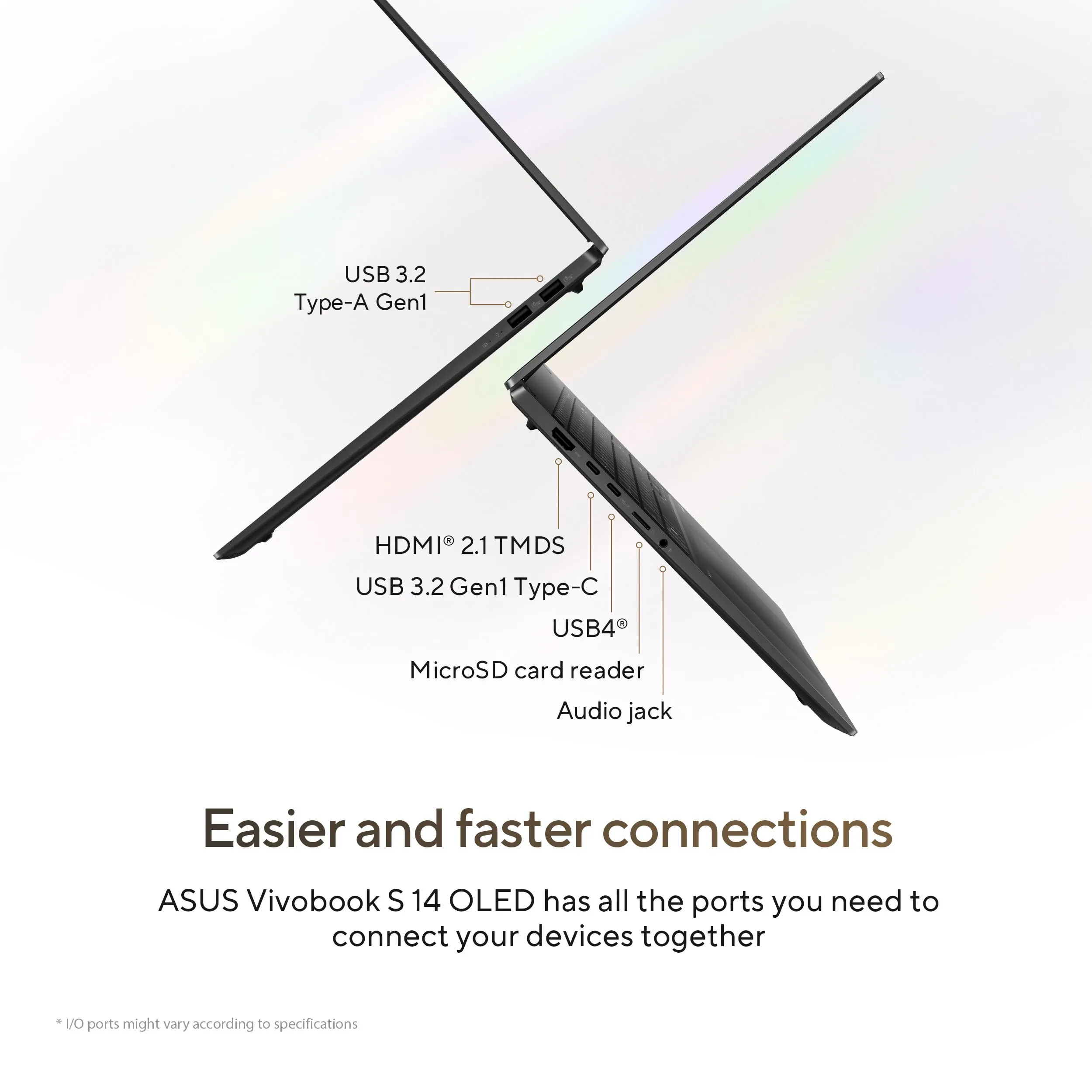 The ASUS Vivobook S is a sleek and powerful laptop designed for both work and play. Featuring a 14.0 WQXGA+ (WQ+) non-touch display, this device offers vibrant visuals and a stunning viewing experience.