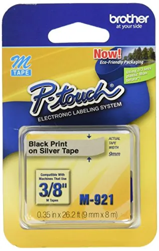 Brother,M921,Non-Laminated Tape 3/8in Black /Silver