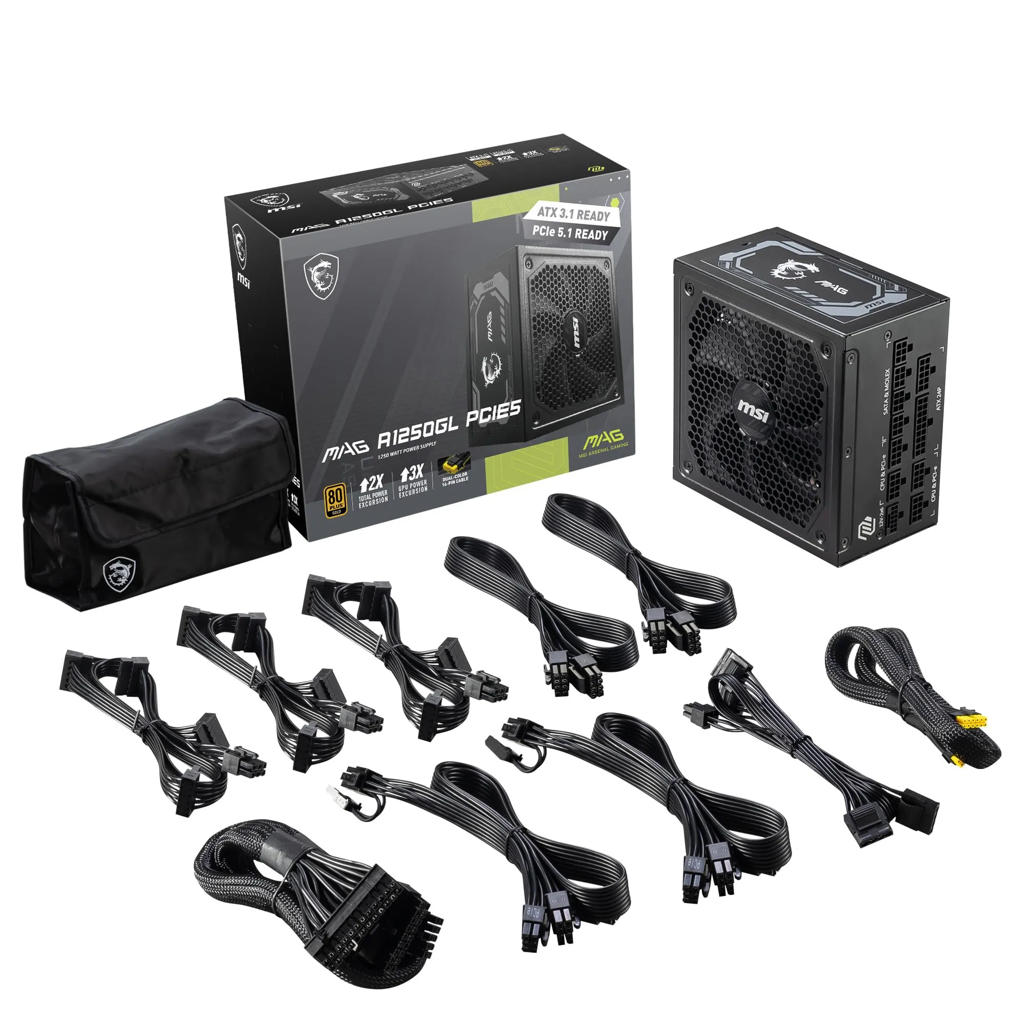 The MAG A1250GL is a high-performance power supply unit designed to deliver a reliable and efficient power source for gaming and professional PCs. With a total output of 1250 watts and support for the latest PCIe 5.0 technology, this power supply is engineered to handle even the most demanding hardware configurations.