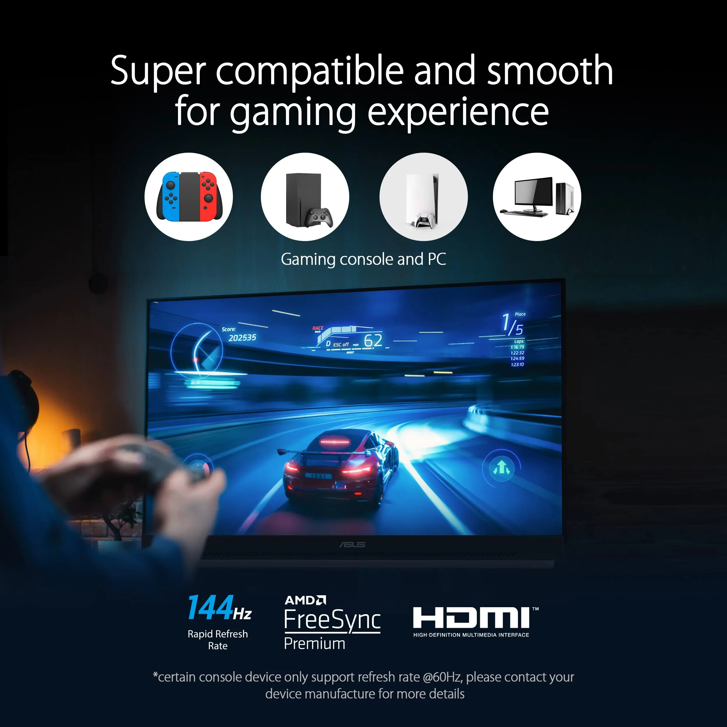 ASUS ZenScreen 17 (17.3" viewable) 1080P Portable USB-C Monitor (MB17AHG) - Full HD, IPS, 144Hz, FreeSync Premium, Eye Care, L-shaped kickstand, Tripod Mountable, HDMI, FSC Certified, ENERGY STAR.