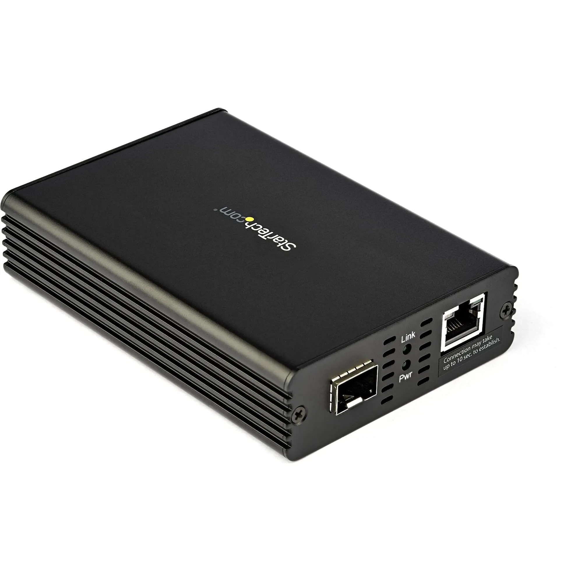 RJ45 to Ethernet fiber media converter extends your network over fiber - Converts a copper RJ45 Ethernet connection to 10Gb fiber - Extends your network over long distances or connects workstations to switches - Features open SFP+ slot for MSA-compliant 10Gb SFP+ modules - 10Gb fiber media converter supports auto-negotiation maximizes the usage of legacy equipment - 10GBASE-T network compatible - Compact design with simple plug-and-play installation - Backed by a StarTech.com 2-year warranty