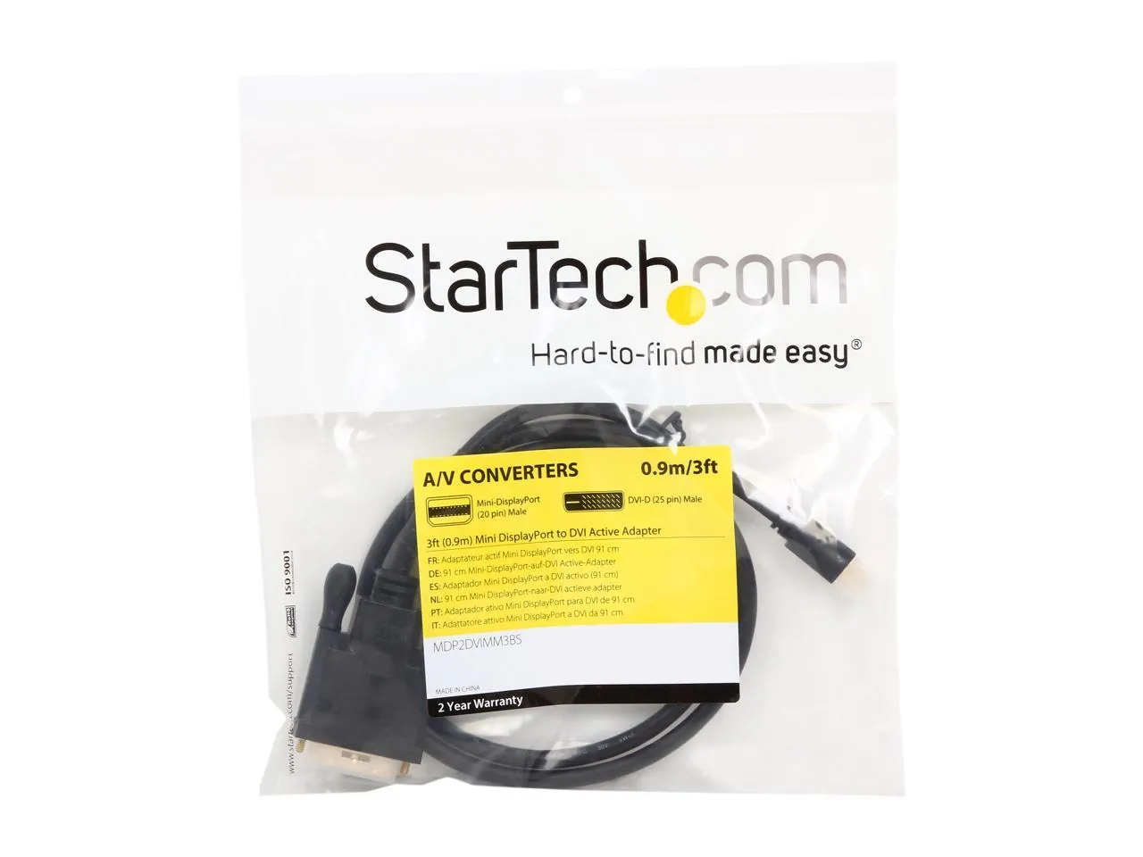 StarTech.com Model MDP2DVIMM3BS Mini DisplayPort to DVI Active Adapter Converter Cable - mDP to DVI 1920 x 1200 Male to Male