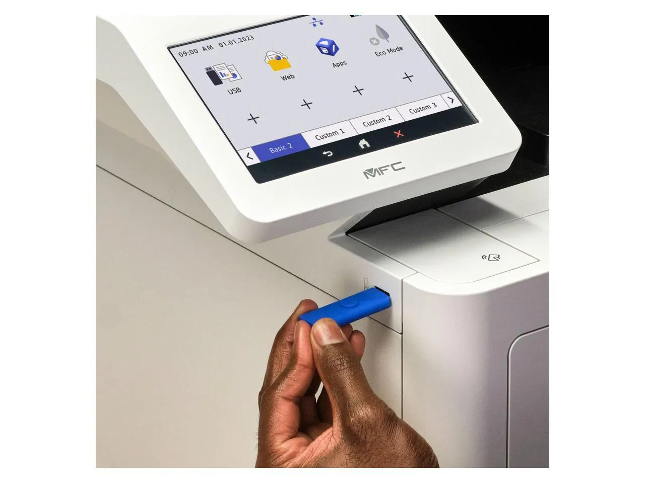 With a print resolution of 2400 x 600 dpi, you can expect sharp and professional-quality documents every time. The printer's robust design and reliable performance ensure that you can handle large print volumes with ease, while its intuitive touchscreen display makes navigation and operation simple.