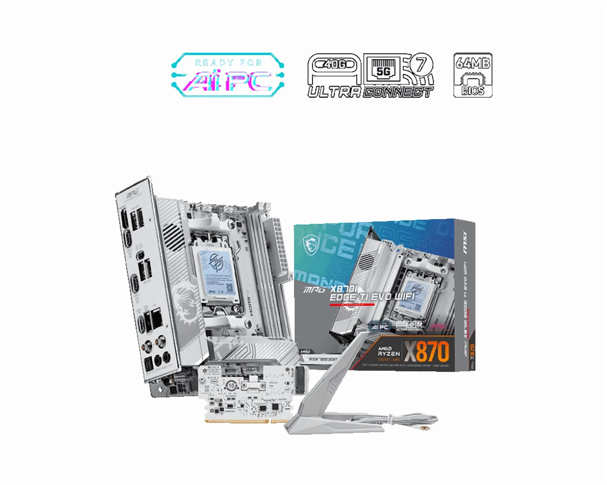 The MSI MPG X870I EDGE TI EVO is a high-performance Mini-ITX motherboard designed for the AM5 platform. It supports up to 128GB of DDR5 memory, ensuring fast and efficient data processing for gamers and creators alike. With advanced cooling solutions and robust connectivity options, this motherboard is perfect for building compact yet powerful systems.