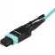 This MPO/MTP fiber optic cable houses 12 fibers and lets you interface between different networking devices of varying speeds. For example, you can set up a one-to-one connection between two 40Gbps switches or servers. Alternatively, you can connect a 40Gbps switch and break out the 40Gbps into six duplex 10Gbps LC connections on a patch panel or network cassette, which then fans out to individual 10Gbps devices.