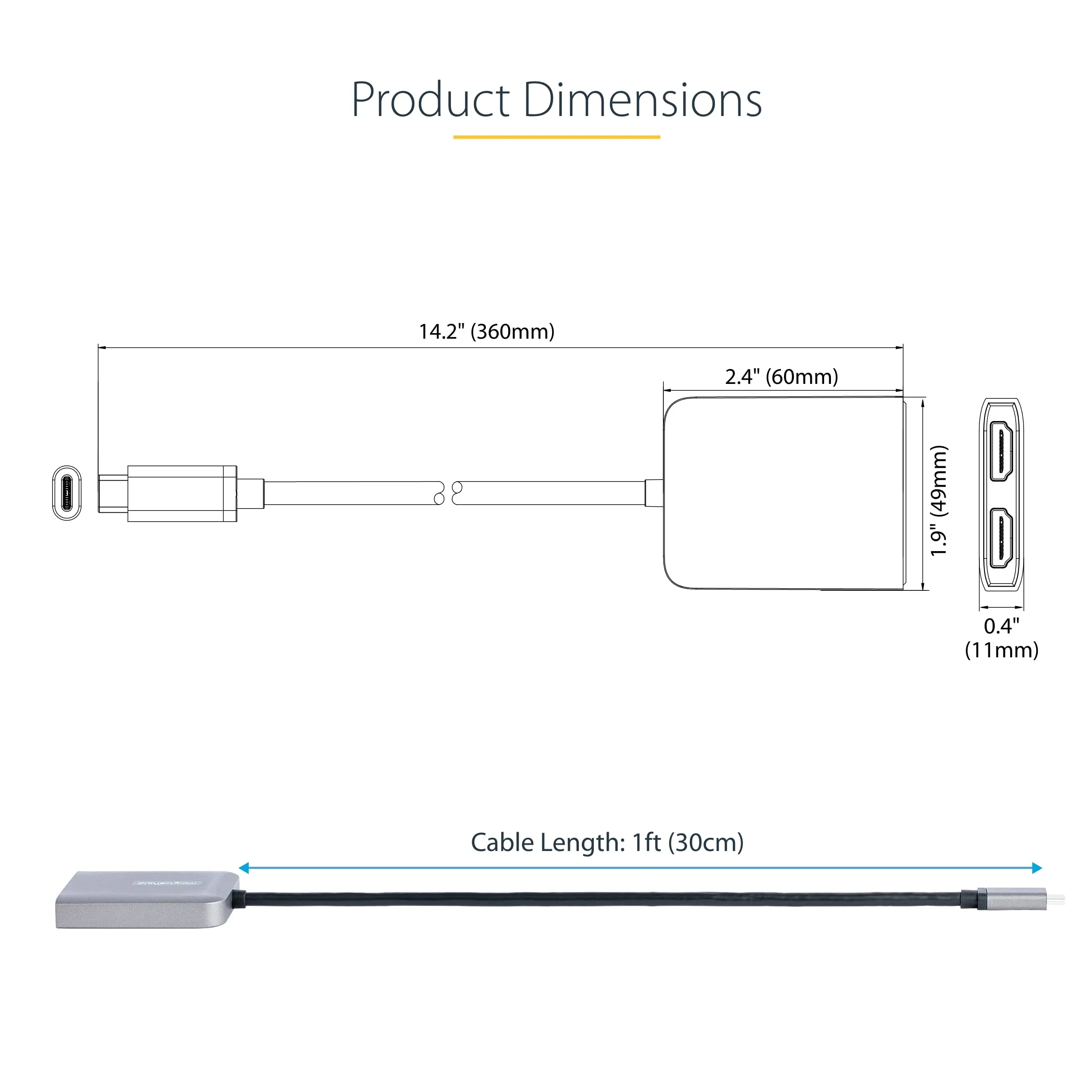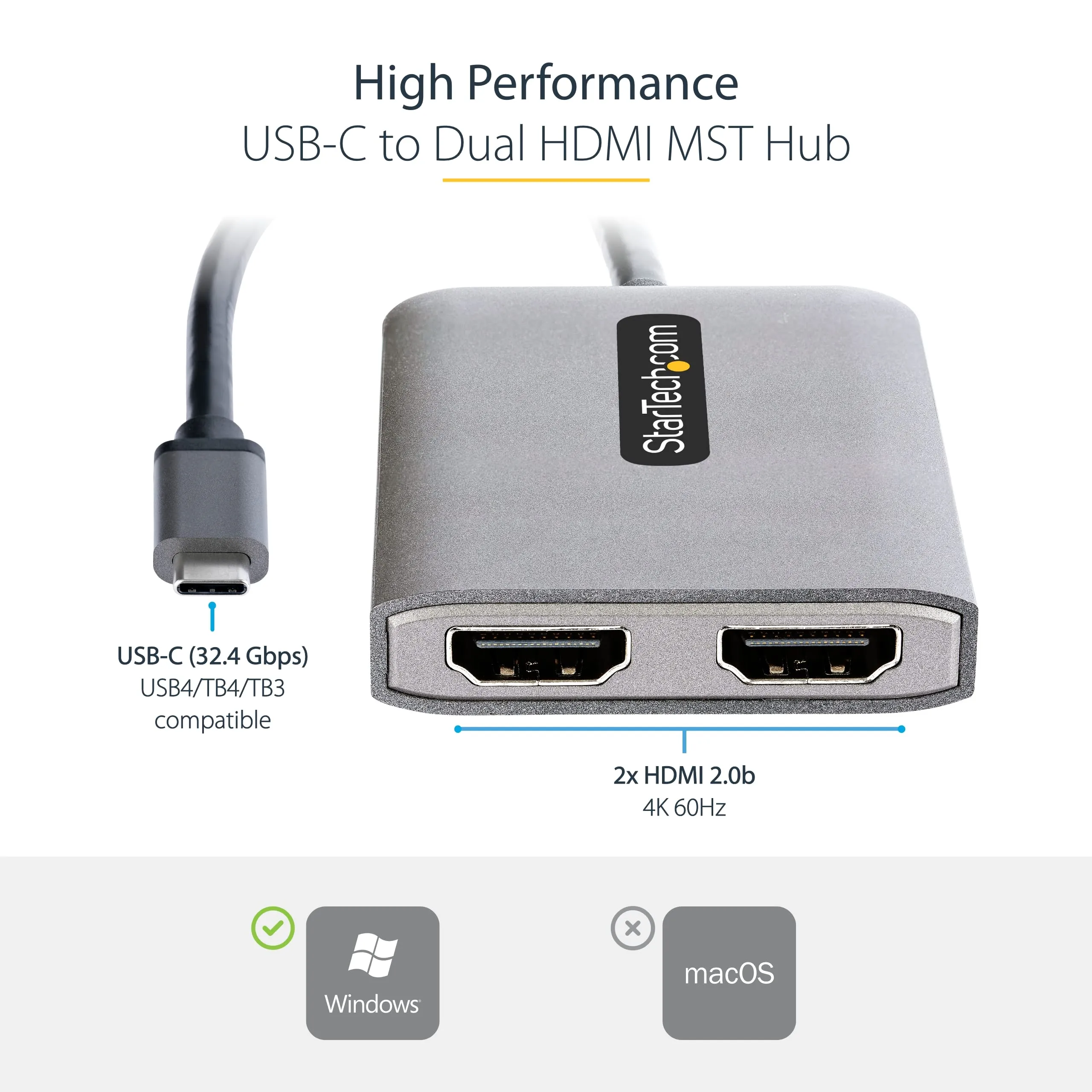 USB C to Dual HDMI MST Hub for Dual 4K 60Hz, DP 1.4/DSC/HBR3/32.4Gbps/HDR/7.1ch Audio/MST, TB4/TB3/USB4 compatible, Windows Only - 2 port MST Hub adds dual extended or mirrored displays, Compatible with lower resolutions such as 1080p - Built-in 1ft cable, Bus-powered, Driverless plug and play setup - Multi-Stream Transport Hub is compatible with Dell XPS Precision Latitude, Lenovo ThinkPad X1 Carbon/Extreme Microsoft Surface Laptop 3/Book 3/Pro 7 HP ProBook/Elitebook/Spectre/Zbook.