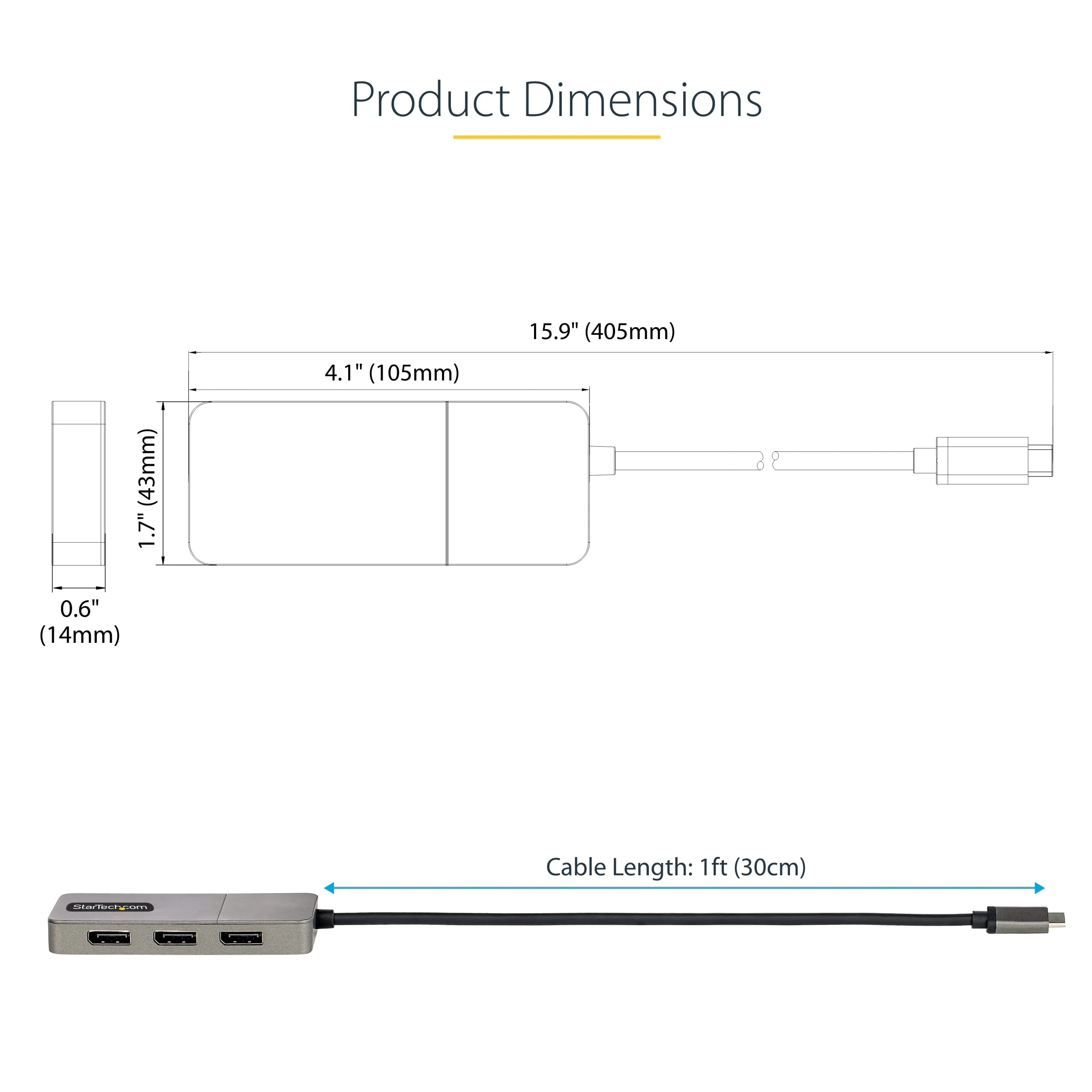 StarTech USB-C to Triple DisplayPort 1.4 MST Hub - 1ft