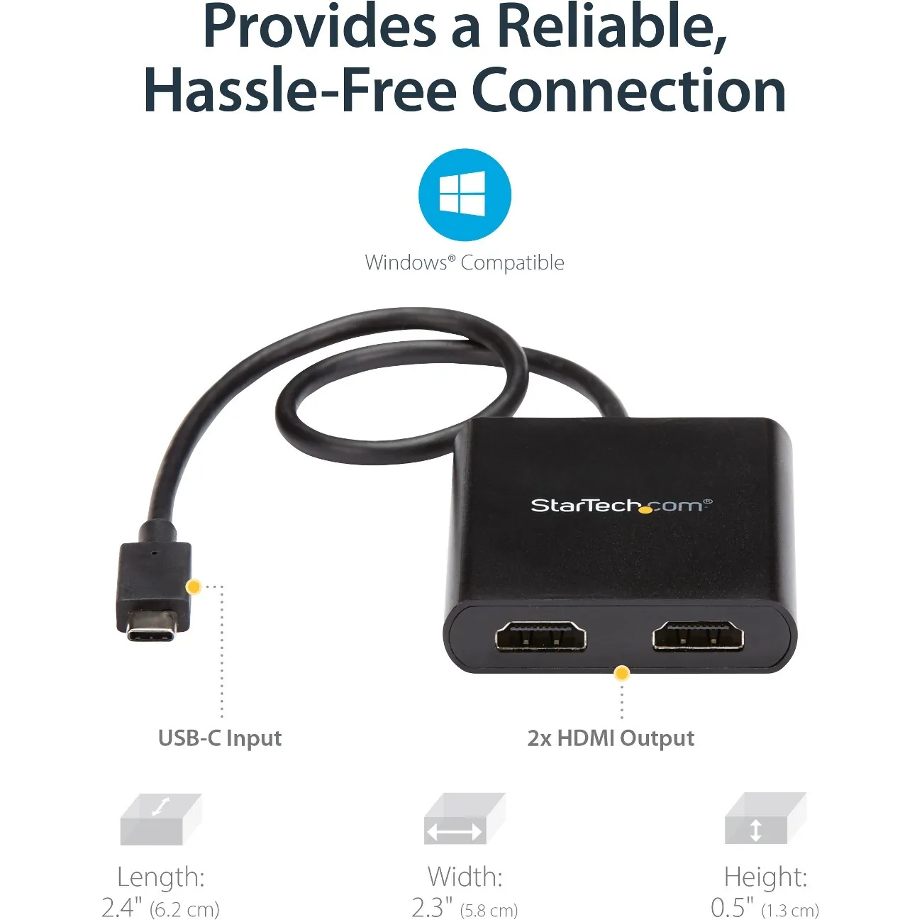 This USB-C to HDMI MST Hub lets you connect two HDMI monitors to your USB Type-C Windows device, conveniently helping you to maximize your productivity.