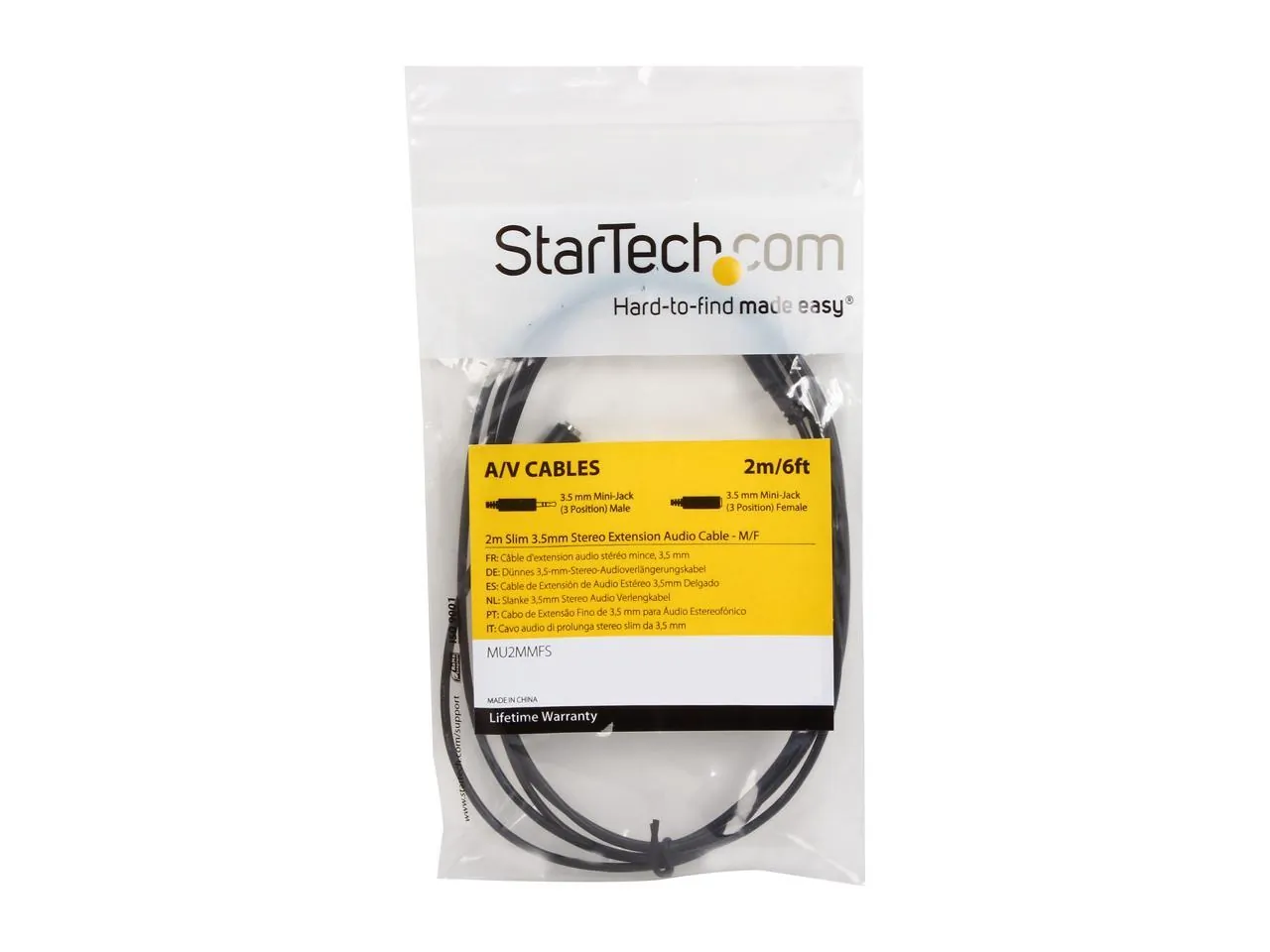 StarTech.com MU2MMFS 6.6 ft. 3.5 mm Mini-Jack (3 Position) to 3.5 mm Mini-Jack (3 Position) Cable Black Male to Female