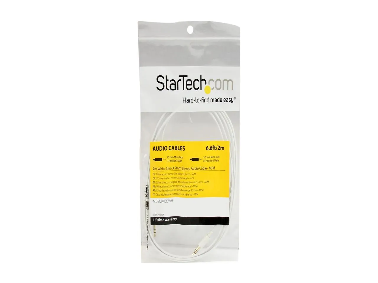 StarTech.com MU2MMMSWH 6.5 ft. White Slim 3.5mm Stereo Audio Cable Male to Male