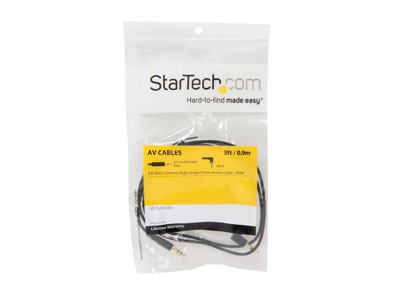 StarTech.com 3 ft. (0.9 m) 3.5mm Audio Cable - 3.5mm Slim Audio Cable - Right Angle - Male/Male - Aux Cable (MU3MMSRA) - Audio cable - stereo mini jack male to stereo mini jack male - 3 ft - black - right-angled connector - for P/N: SV231DVGAU2A, SV431DVGAU2A