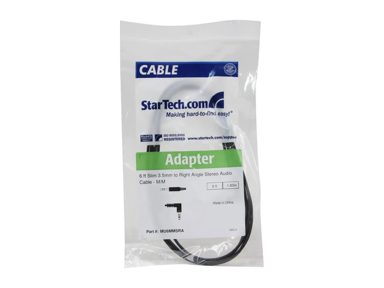 The StarTech 3.5mm Male to Right Angle Stereo Audio Cable is designed to connect your audio devices with ease. Featuring a slim design, this cable allows for a clean and organized setup while eliminating stress on the connectors.