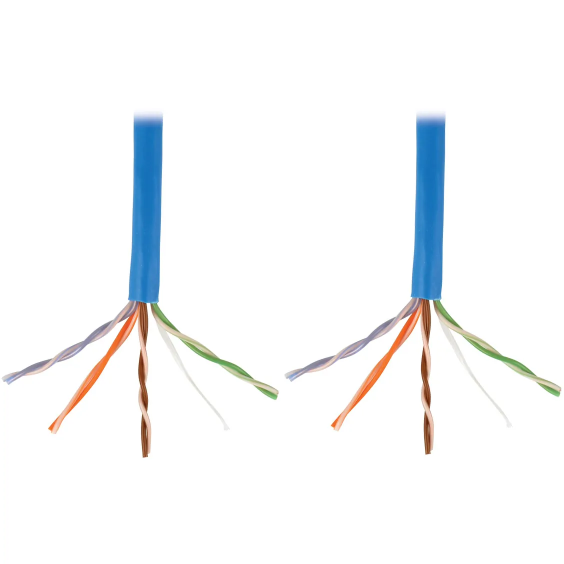 General InformationThe N024-01K-BL Cat5e 350 MHz Bulk Solid-Core Plenum-Rated PVC Cable is premium cabling designed for Cat5/5e premise applications in air ducts and drop ceilings, such as connecting an Ethernet wall jack to a router, patch panel or switch. Designed for fast transmission and excellent signal quality, this blue cable ensures peak performance through your LAN (local area network). Manufactured from 24 AWG copper wire, the four-pair solid UTP N024-01K-BL delivers speeds up to 350 MHz/1 Gbps. Protected by a plenum-rated PVC jacket, this cable is ideal for all horizontal wiring applications, including 10/100/1000 Base-T Ethernet, 100 Mbps TPDDI, 155 Mbps ATM, ISDN, voice and Token Ring Type 3 applications. The N024-01K-BL meets most current industry standards, including IEEE 802.3ab, IEEE 802.5, ANSI/EIA/TIA 568, ISO/IEC 11801 and ETL (category 5e, draft 11).Technical InformationCable Type: Category 5eCable Length: 1000 ftConnector on First End: 1 x Bare WireConnector on Second End: 1 x Bare WireDevice Supported: RouterDevice Supported: SwitchDevice Supported: Patch PanelDevice Supported: Network DeviceAmerican Wire Gauge: 24 AWGData Transfer Rate: 128 MB/sPhysical CharacteristicsColor: BlueMiscellaneousEnvironmentally Friendly: YesEnvironmental Certification: RoHSWarrantyLimited Warranty: Lifetime
