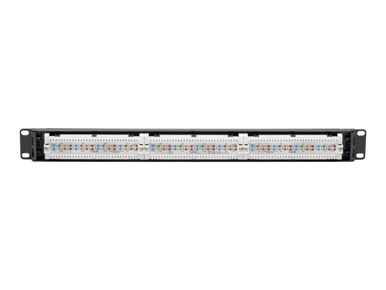 Power over Ethernet patch panel prevents spark-gap erosion that can affect transmission24 RJ45 and 110 ports numbered/labeled for immediate cable identificationMounts easily into 1U of space in your EIA-standard 19 in. rack for immediate useSupports EIA/TIA 568A/B wiring standards for either 110 or Krone-type terminationsIdeal for managing Cat5e cable patching in high-density IT environmentsProduct Type Network Patch PanelInterfaces/Ports Total Number of Ports 24 Number of Network (RJ-45) Ports 24Color BlackForm Factor Rack-mountableCompatible Rack Unit 1UCompatible Rack Width 19"Height 4.4cm Width 47.98cm Depth 11.13cmPackage Contents N052-P24 24-Port 1U Rack-Mount Cat5e Patch Panel - PoE+ Compliant Cable Management Bracket 8 x Cable Ties Quick Start GuideEnvironmentally Friendly Yes Environmental Certification RoHS TAA Compliant Yes