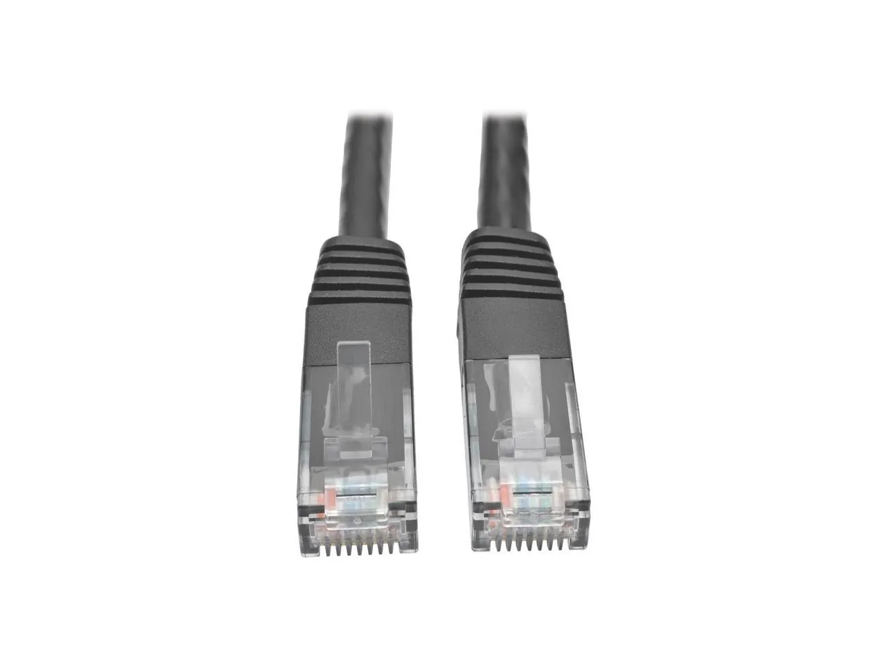 Category 6 for Network Device, Router, Modem, Blu-ray Player, Printer, Computer - 128 MB/s - Patch Cable - 50 ft - 1 x RJ-45 Male Network - 1 x RJ-45 Male Network - Gold-plated Contacts - Black General Information Manufacturer: Tripp Lite by Eaton Manufacturer Part Number: N200-050-BK Brand Name: Tripp Lite Product Model: N200-050-BK Product Name: Cat6 Gigabit Molded Patch Cable (RJ45 M/M), Black, 50 ft Marketing Information: The N200-050-BK Cat6 Gigabit Molded Patch Cable ensures ultra-fast performance throughout your Cat5/5e/6 network application. It connects high-speed network components like computers, printers, video game systems, Blu-ray players, copy machines, routers and modems in a home or office Cat5/5e/6 application.This 50-foot black cable is designed for 1000Base-T (1 Gbps Ethernet), 10/100Base-T (Ethernet), 100 Mbps TPDDI, 155 Mbps ATM, ISDN, voice, Token Ring Type 3 and EIA/TIA applications. Manufactured from 24 AWG 4-pair solid UTP with a staggered-pin plug design and male RJ45 connectors, each cable provides high-speed connections up to one Gbps and flawless signal delivery, while keeping near-end crosstalk levels to a minimum.Featuring a PVC jacket, the N200-050-BK is constructed of top-quality materials for long life and durability. Copper contacts are gold-plated to ensure an accurate signal transfer. Molded integral strain relief guarantees a secure connection. Meets most current industry standards, including IEEE 802.3ab, IEEE 802.5, ANSI/EIA/TIA 568, ISO/IEC 11801 and ETL (category 6 draft 11). Product Type: Network Cable Technical Information Cable Type: Category 6 Cable Characteristic: Patch Cable Cable Length: 50 ft Connector Type on First End: RJ-45 Network - Male Connector on First End Details: 1 x RJ-45 Network - Male Connector Type on Second End: RJ-45 Network - Male Connector on Second End Details: 1 x RJ-45 Network - Male Contact Plating: Gold Features: Molded Features: Strain Relief Device Supported: Blu-ray Player Device Supported: Computer Device Supported: Modem Device Supported: Network Device Device Supported: Printer Device Supported: Router American Wire Gauge: 24 AWG Data Transfer Rate: 1 Gbit/s Physical Characteristics Product Color: Black Miscellaneous Environmentally Friendly: Yes Environmental Certification: RoHS Country of Origin: China Warranty Limited Warranty: Lifetime