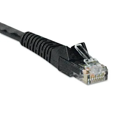 Meets category 6 cabling standards Premium cabling for category 6, category 5e and category 5 applications Length: 7 ft. / Color: black / Connectors: RJ45 male Drastically reduce impedance & structural return loss compared to standard 100MHz wire High-quality copper wire and a staggered-pin plug design to keep near-end crosstalk levels to a minimum Feature molded connectors with integral strain relief Snagless design protects the locking tabs on the RJ45 connectors from being damaged or snapped off during installation PVC 4-pair stranded UTP Deliver stable performance up to 550MHz/1 Gbps communication Meets most current industry standards including IEEE 802.3ab, IEEE 802.5, ANSI/EIA/TIA 568, ISO/IEC 11801 and ETL (category 6 draft 11) Available in other colors and lengths System Requirements: For 1000 Base-T (1Gbps Ethernet), 10/100 Base-T (Ethernet), 100 Mbps TPDDI, 155 Mbps ATM, ISDN, voice and Token Ring TYPE 3 applications as well as EIA/TIA applications. Package Contents: 7-ft. Cat6 Black Gigabit Patch Cord Snagless Molded Color: Black Connector A: RJ45 (Male) Connector B: RJ45 (Male)