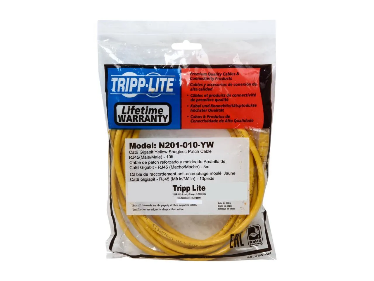 Tripp Lite 10ft Cat6 Gigabit Snagless Molded Patch Cable RJ45 M/M Yellow 10' - Patch cable - RJ-45 (M) to RJ-45 (M) - 10 ft - UTP - CAT 6 - molded, snagless, stranded - yellow