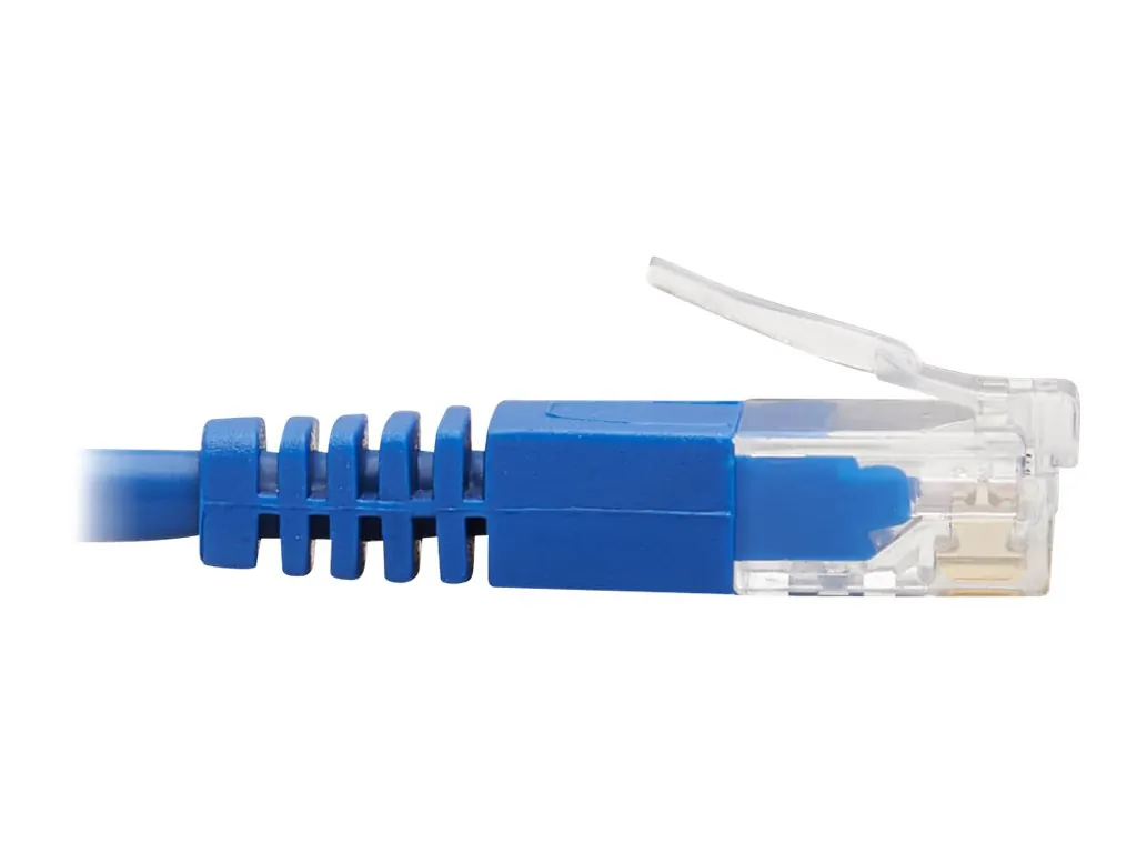 This Tripp Lite 2FT CAT6 Ethernet Cable features a slim design and upward angled connectors, making it perfect for tight spaces and organized setups. Its unshielded twisted pair (UTP) construction ensures reliable data transmission at high speeds.