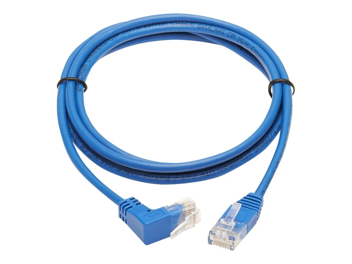 The Tripp Lite 5FT CAT6 Ethernet Cable features a slim, right-angle design that is perfect for tight spaces. Its UTP construction ensures high-speed data transmission, making it ideal for networking applications.