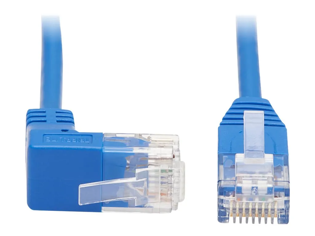 The Tripp Lite 10FT Slim Angled CAT6 Ethernet Cable is designed for high-speed networking and efficient space-saving connections. This cable features a slim profile with an upward angle, making it ideal for tight spaces and wall-mounted devices.