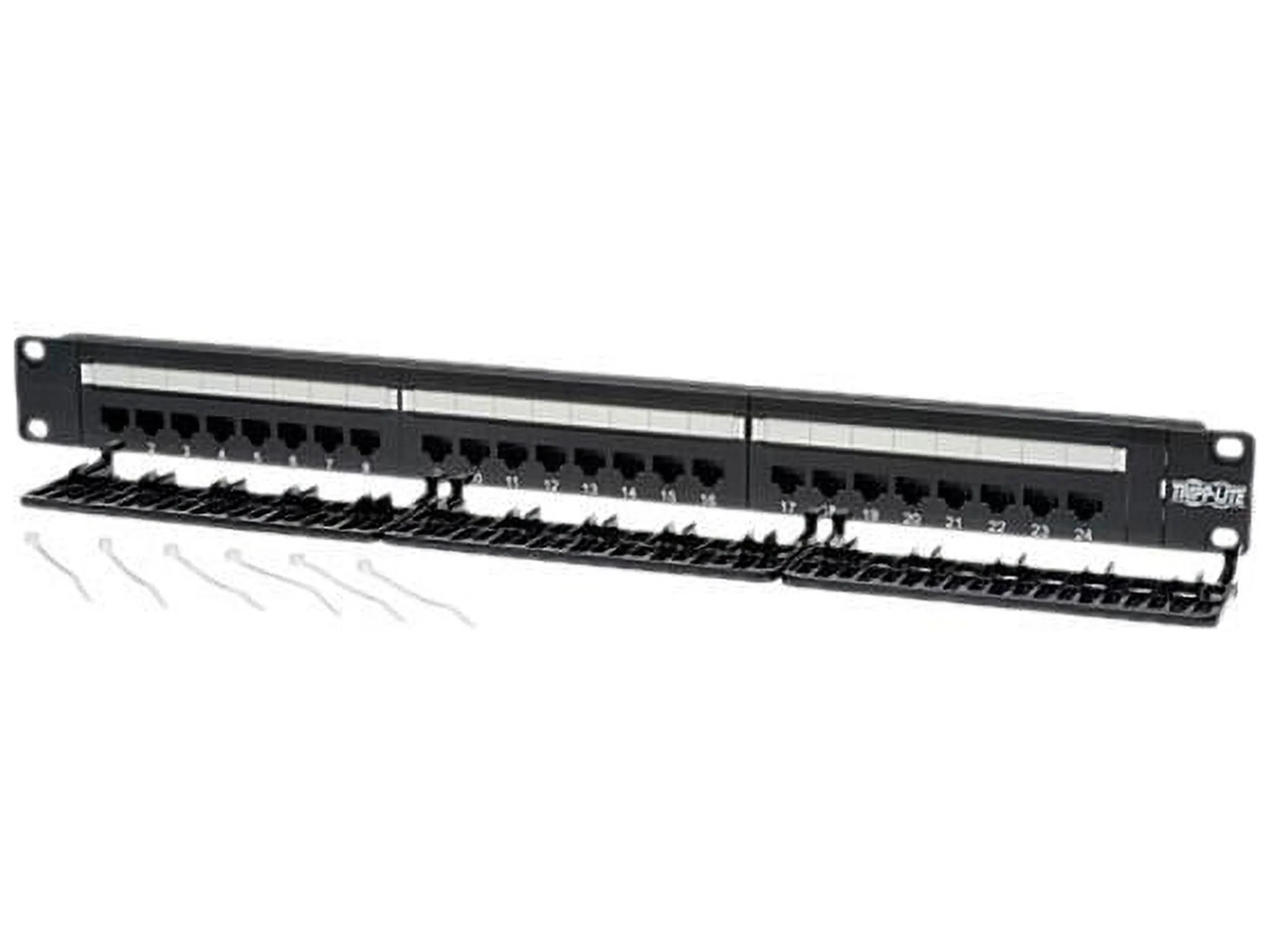 Tripp Lite's Category 6 Patch Panels offer you all the functionality and compatibility as any name brand. Each panel comes with 110-type termination, while meeting and exceeding EIA/TIA TSB-40 Cat6 connecting hardware specifications. Color coded for both EIA/TIA 568A & 568B installations. 24 ports ensure a wide range of plug-n-play options. The clear numbering on both the front and back of each panel gives you a quick and easy way to identify cable runs and the high density 19in panel design will save you valuable space in on the rack. Tripp Lite warrants this product to be free from defects in materials and workmanship for life. Cat6 UL approved Ports clearly numbered both on front and back Labels on front enable each port to be named Color coded label on back offers both EIA/TIA 568A & 568B wiring Metal frame EIA/TIA 2/32 spacing Rack mountable on a 19 rack (1U of space) Tripp Lite warrants this product to be free from defects in materials and workmanship for life Package Includes Cat6 Patch Panel 568B- 24 Port