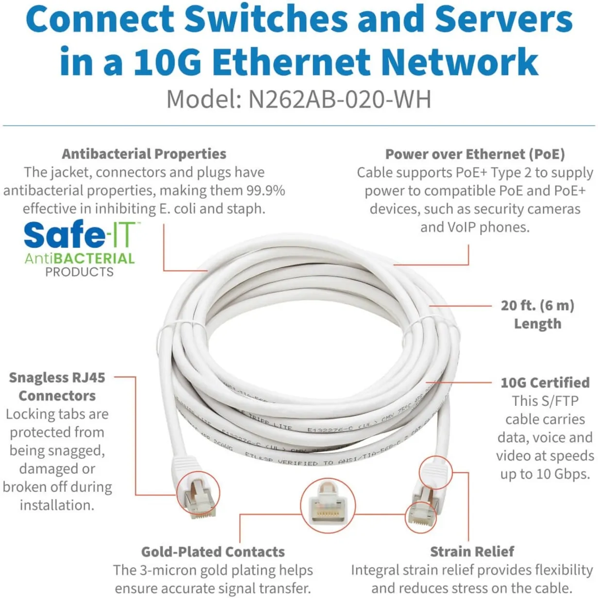 This 20FT Antibacterial Snagless CAT6A Ethernet Cable is designed for optimal performance and connectivity. Ideal for home and office use, it supports Power over Ethernet (PoE) applications, ensuring a reliable and secure connection.