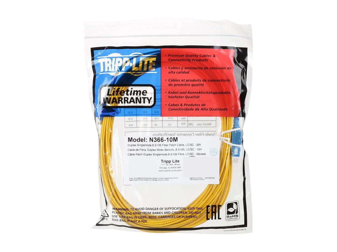 Tripp Lite 10M Duplex Singlemode 9/125 Fiber Optic Patch Cable LC/SC 33' 33ft 10 Meter - Patch cable - LC single-mode (M) to SC single-mode (M) - 10 m - fiber optic - duplex - 9 / 125 micron - riser - yellow