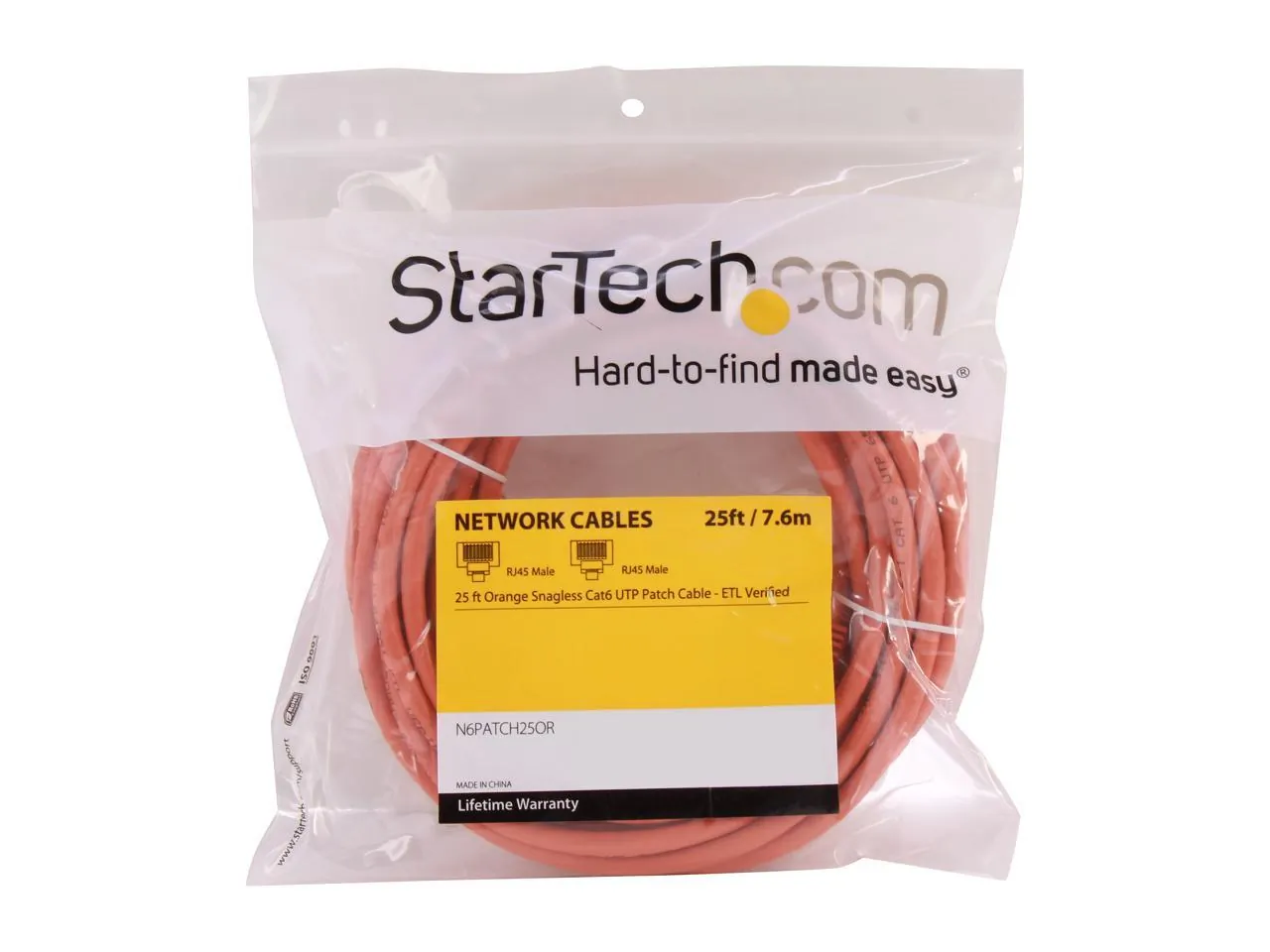 The N6PATCH25OR Cat 6 Patch Cable (25 ft) meets or exceeds all Category 6 cable specifications to ensure reliable Gigabit network connections, and features a durable orange PVC jacket that enables you to color code your network cable runs as needed.