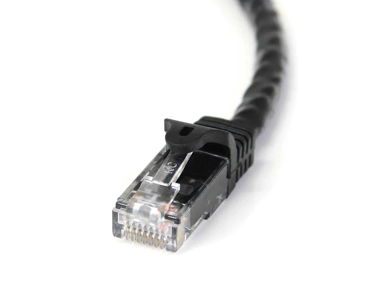 This 50 ft black Snagless Cat6 UTP Patch Cable is designed to provide reliable and high-speed network connections. ETL verified to meet or exceed all Category 6 performance standards, this cable features a robust black jacket that enhances durability and ensures long-lasting performance in various networking environments.