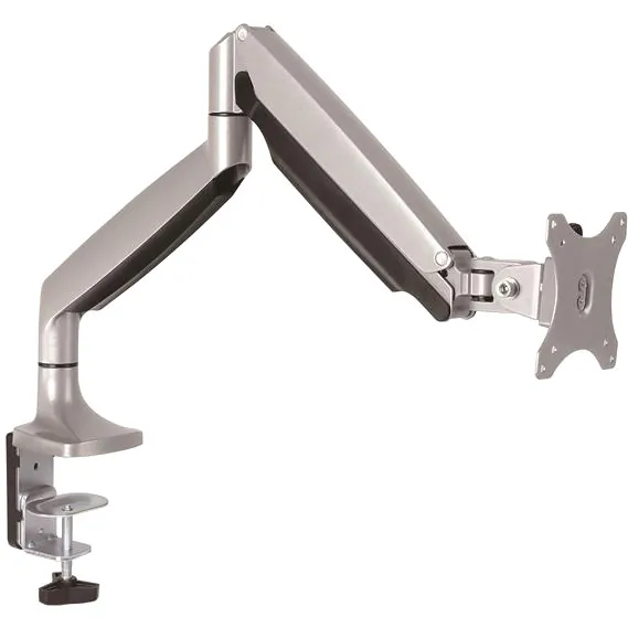 Free up space while creating a more comfortable and productive work environment. This desk-mount monitor arm makes it easy to mount your VESA mount (75x75, 100x100) display above your desk or table and adjust the height with one touch for ideal viewing. Its sleek silver finish enhances the aesthetics of your workspace.