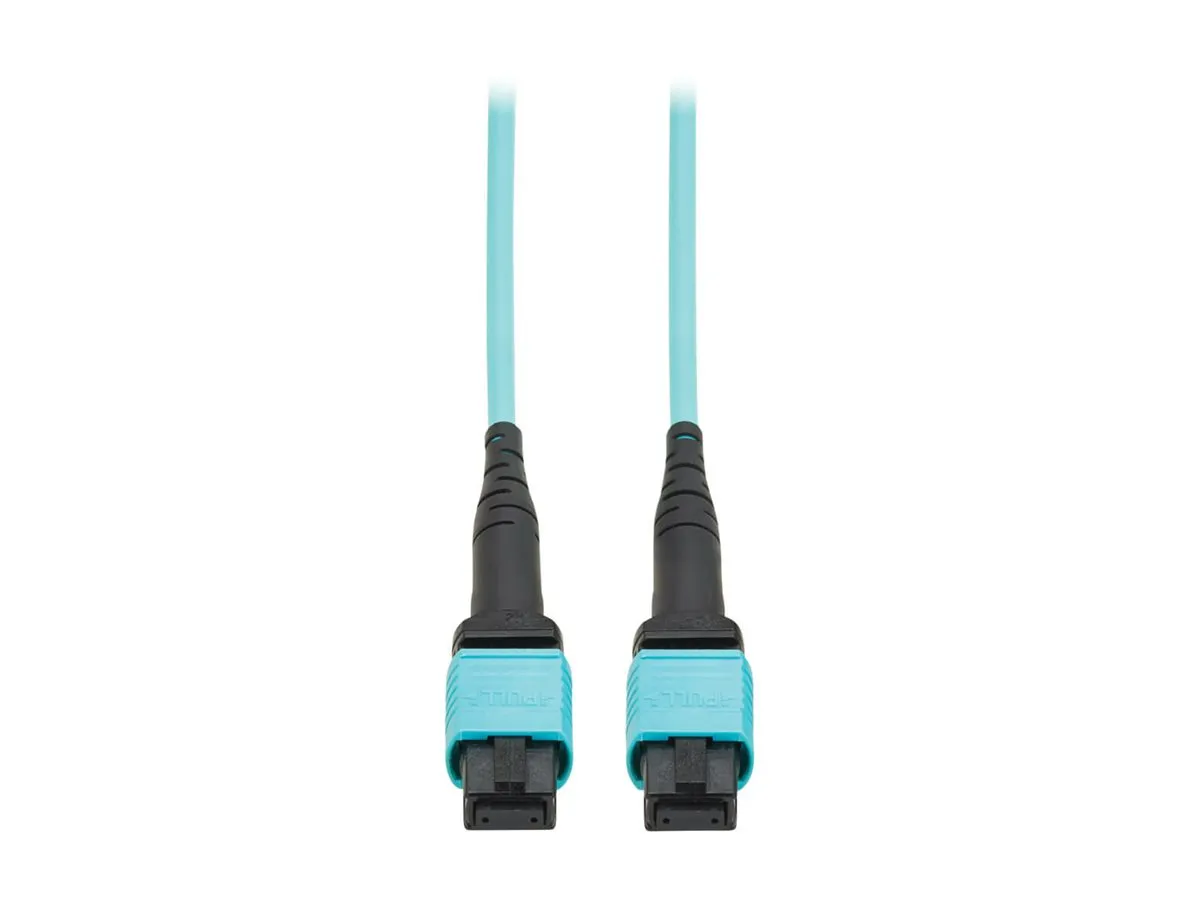 Eaton Tripp Lite Series 100G Multimode 50/125 OM4 Fiber Optic Cable (12F MTP/MPO-PC F/F), Type-A Polarity, OFNP, Aqua, 5 m (16.4 ft.), TAA