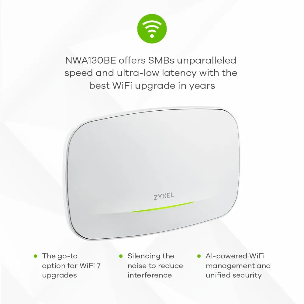 The Zyxel WiFi 7 NebulaFlex Access Point delivers exceptional performance with tri-band connectivity and speeds reaching up to 11Gbps. Designed for enterprise environments, this access point is powered by a robust Qualcomm quad-core CPU that enhances both speed and capacity. With its advanced management and security features from Zyxel Nebula, businesses can enjoy reliable connectivity that meets the demands of modern workplaces.