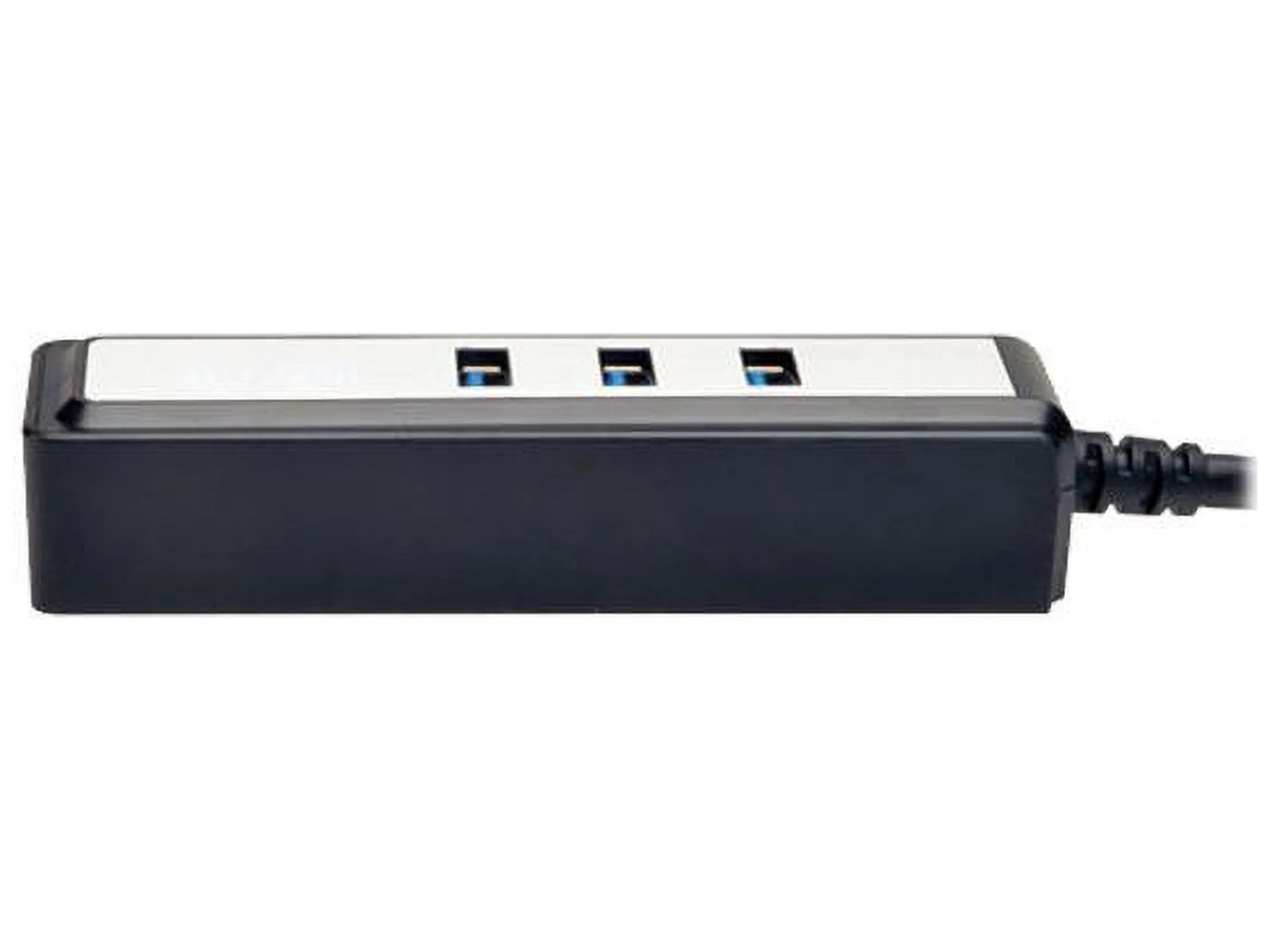 Expand your connectivity with this sleek 4-port USB 3.0 portable hub, featuring a convenient 1-foot cable for easy setup. Enjoy supersonic data transfer speeds of up to 5Gbps, allowing you to connect multiple devices effortlessly.