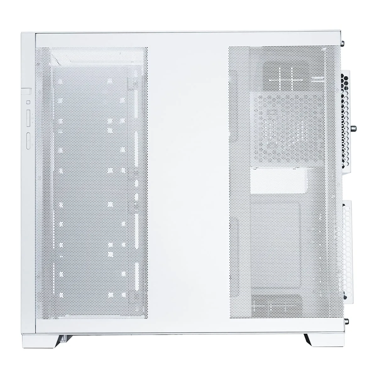 The LIAN LI O11 EVO RGB White is a premium ATX mid tower computer case designed for optimal airflow and cooling performance. Its sleek white aluminum and tempered glass design enhances any setup while providing excellent visibility of your components and RGB lighting.