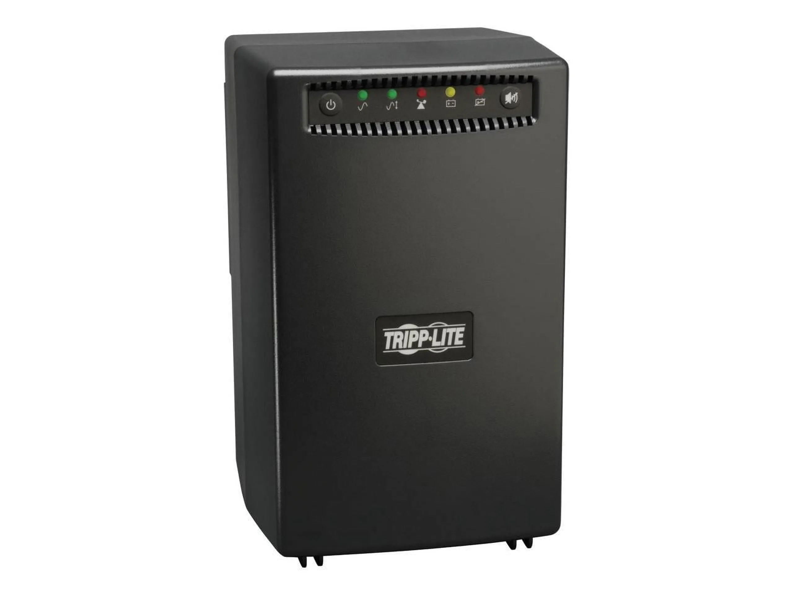 Tripp Lite's OMNIVS1500 OmniVS Line-Interactive UPS Tower with USB Port offers voltage regulation, surge suppression and battery support for personal computers, internet working equipment and other sensitive electronics. Internal UPS batteries support entry level PC systems for up to 75 minutes during power failures so that connected equipment can be shut down without data loss. AVR circuits regulate brownouts as low as 75 volts and overvoltages up to 147-volts back to usable 120-volt levels without using battery power. It offers complete desktop power protection in an attractive black tower configuration. It includes 5 battery supported outlets for computers, monitors and vital system peripherals, plus 3 additional surge suppression only outlets for printers and other system accessories not requiring battery support. The USB port enables optional unattended system shutdown without data loss in the case of extended power failure. PowerAlert software is available via free download. The HID-compliant USB port also enables integration with built-in power management and auto shutdown features of Windows and Mac OS X. Built-in data line suppression offers protection for equipment with single line telephone/DSL or network Ethernet connection. Built-in audible alarm and 5 front panel LEDs indicate status of line power, battery power, battery low/replace, voltage regulation and overload. 1,500-volt-ampere power handling ability supports entry-level PCs, network workstations, point-of-sale equipment, small business phone systems, audio/video equipment and home theater systems. It offers 4.5 minutes battery run time with a full load of 1,500-volt-ampere and 11.5 minutes with a half load of 750-volt-amperes. It supports hot-swappable battery replacement via built-in access panel.