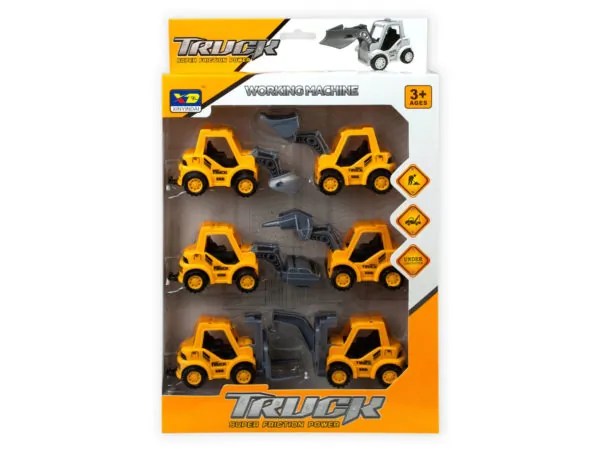 Each truck, measuring approximately 3" x 2" x 3" x 1.75", is specifically designed to handle various imaginative tasks, making them a perfect fit for sand, dirt, or block building adventures. They come neatly packaged in a vibrant 9" x 14.25" x 1.75" hanging box, ready to inspire creativity.