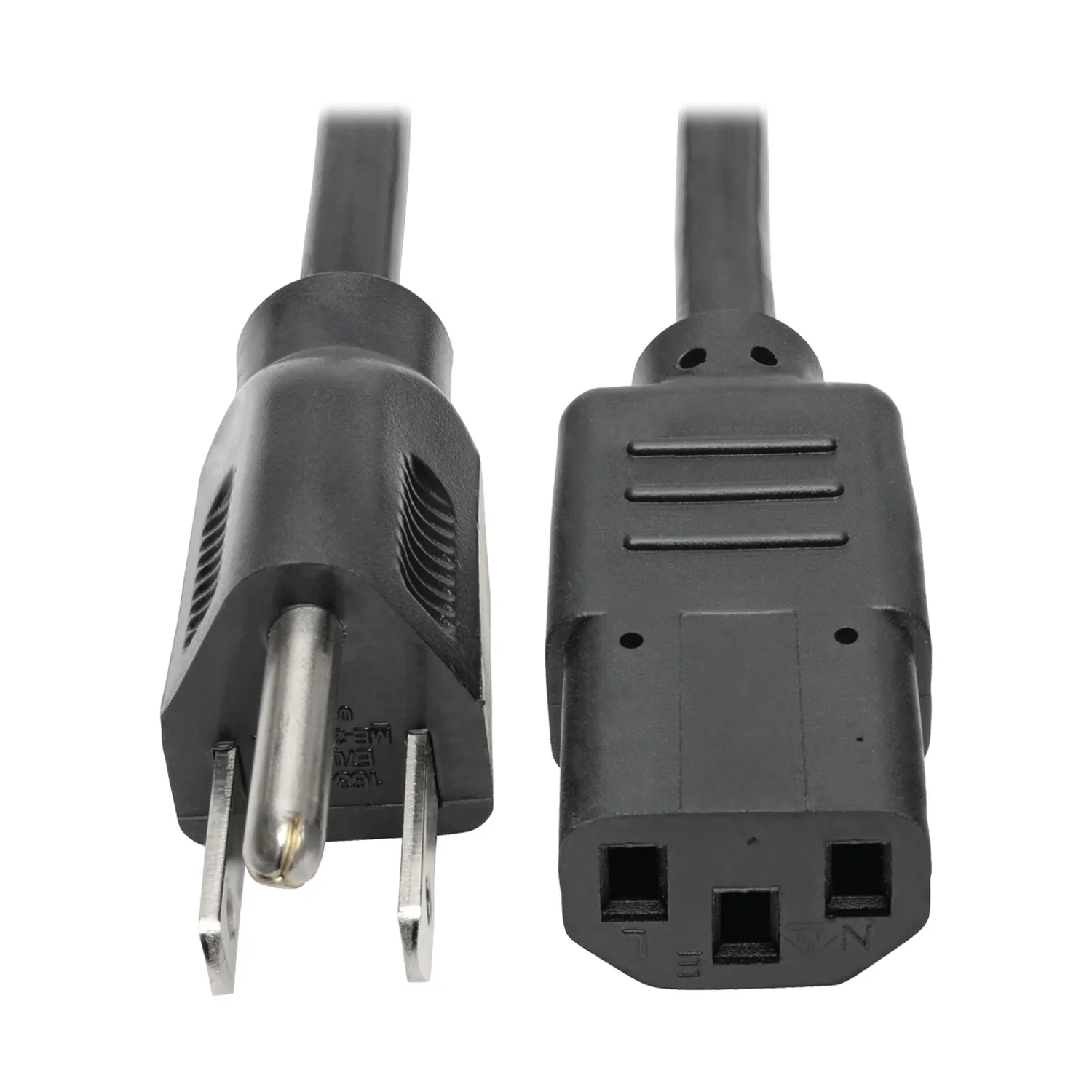 ? NEMA 5-15P AC plug to IEC-320 C13 receptacle;? 18-gauge, SJT, 10A, 125V;? Replacement power cable for PC, printer, monitor or other device with like plugs;? Universal design;? UL listed;? Limited lifetime warranty;? 20ft;