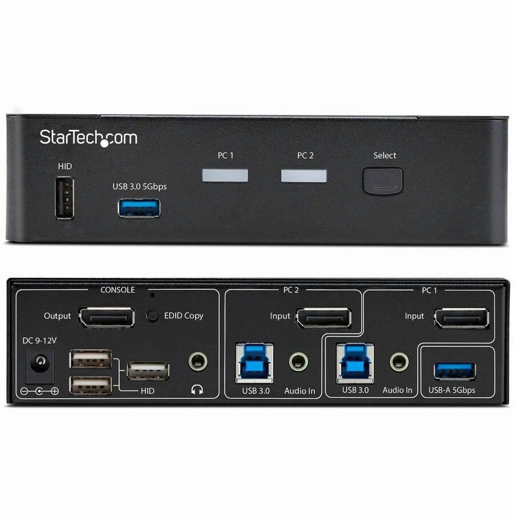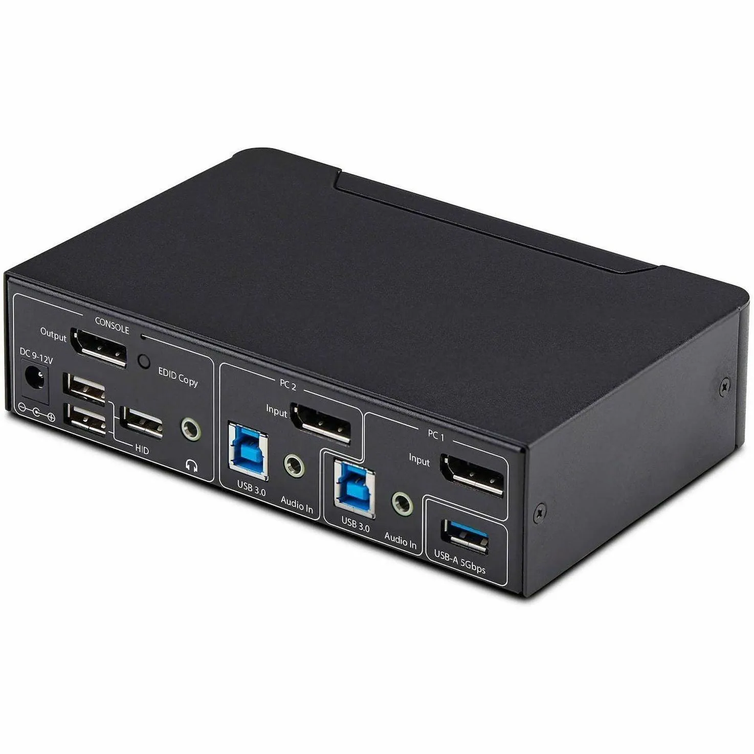 Control two DisplayPort desktops/servers using one mouse/keyboard/USB 5Gbps hub and 4K 60Hz monitor - EDID button retains/auto-detects/defaults to reduce resolution issues; HDCP 1.4 - TAA-compliant KVM works with all operating systems and hardware platforms with no software required - Switch systems via push-buttons or hotkeys with LED indicators and audio monitoring from either system - Metal housing reduces EMI with 4kV ESD protection and rubber feet for stability and surface protection