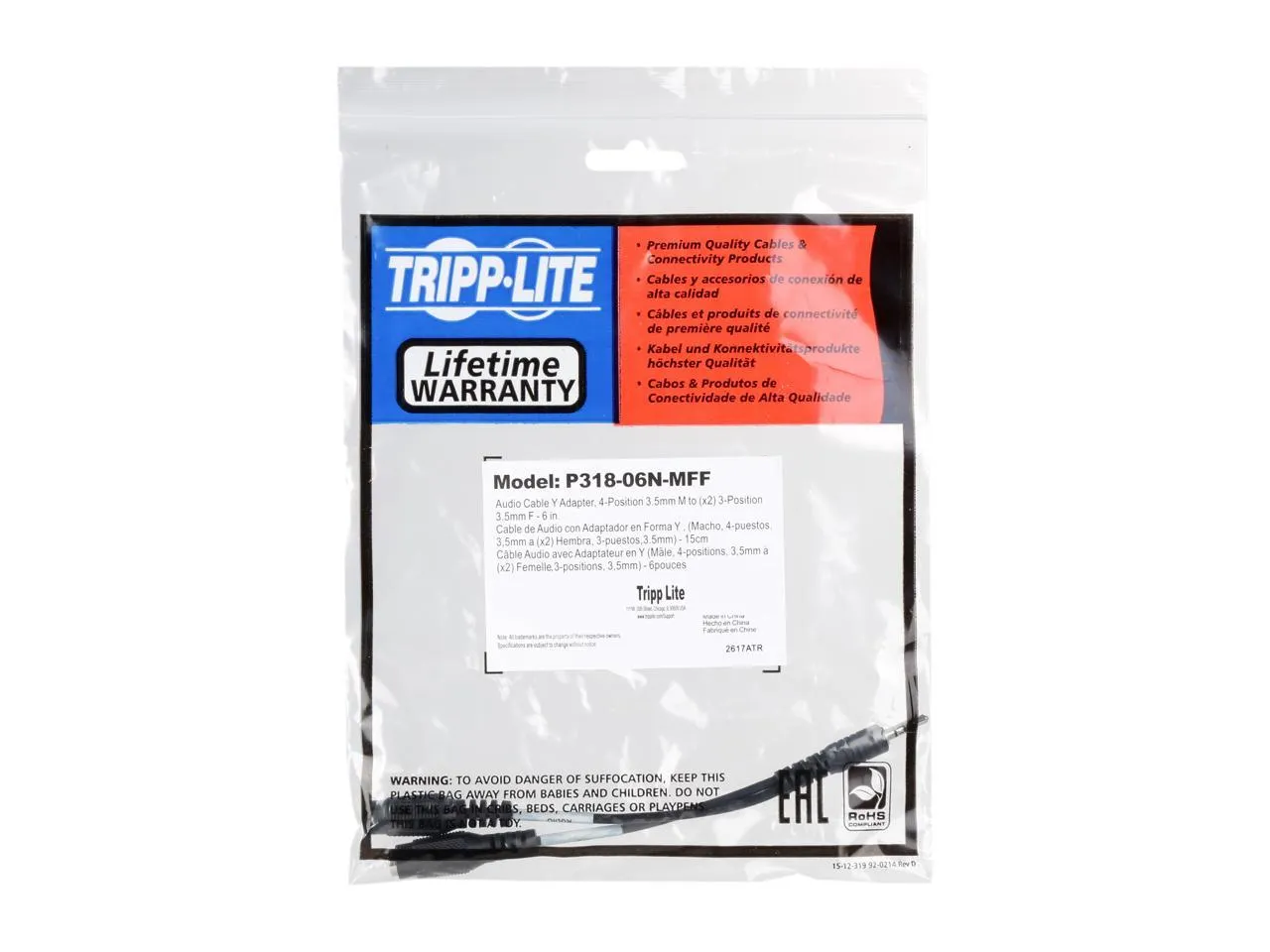 Tripp Lite 3.5mm Audio Headset Splitter/Adapter x2 Female to Male 6 inch 6in. in.