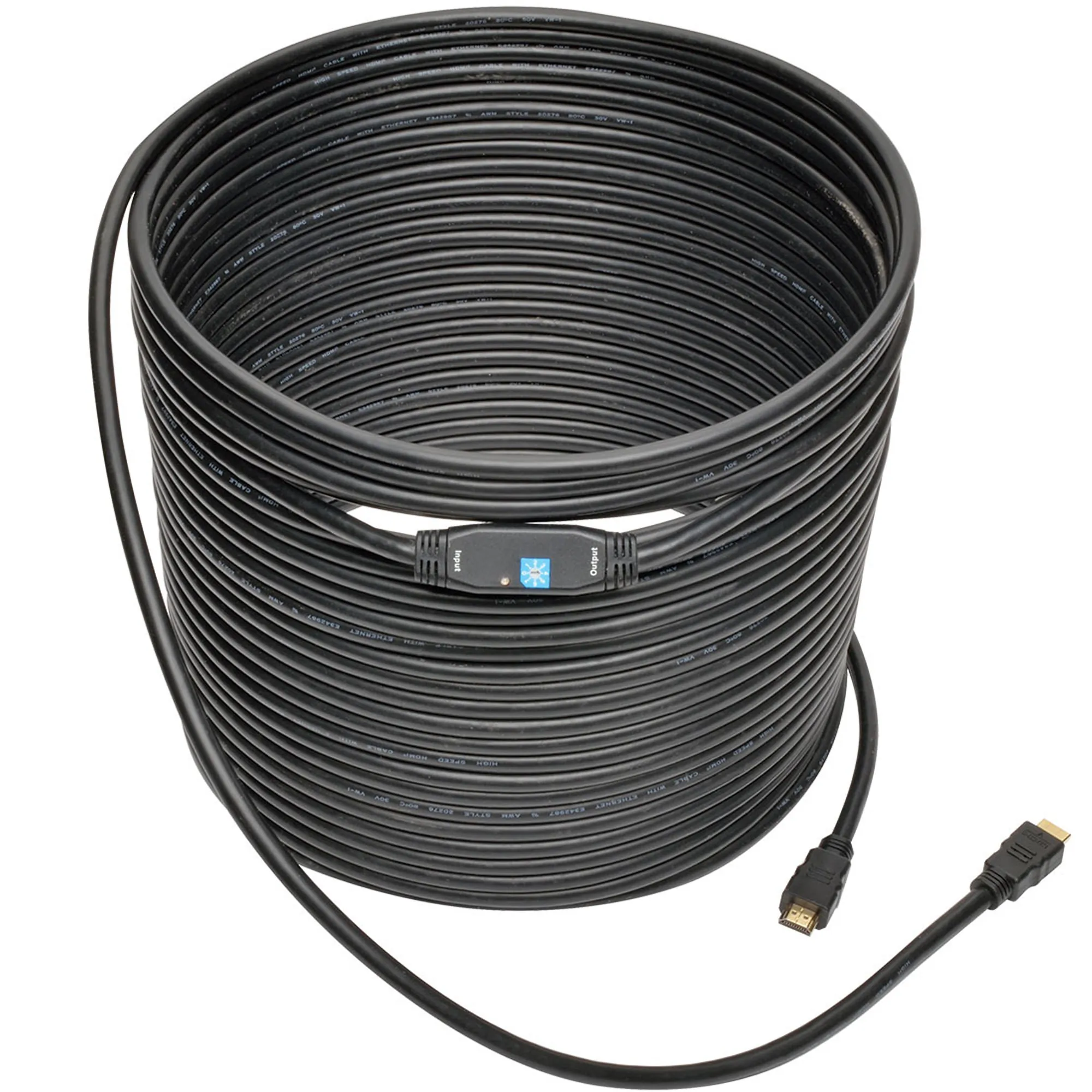 The P568-080-ACT Active High-Speed HDMI Cable (M/M) connects a computer, cable box or Blu-ray? source to a high-definition monitor, projector or television up to 80 feet away. Its built-in signal booster allows a clean audio/video transmission without the effort and expense of adding an external repeater to your HDMI cable run. Plus, a built-in equalization control lets you manually adjust the display image to your liking.