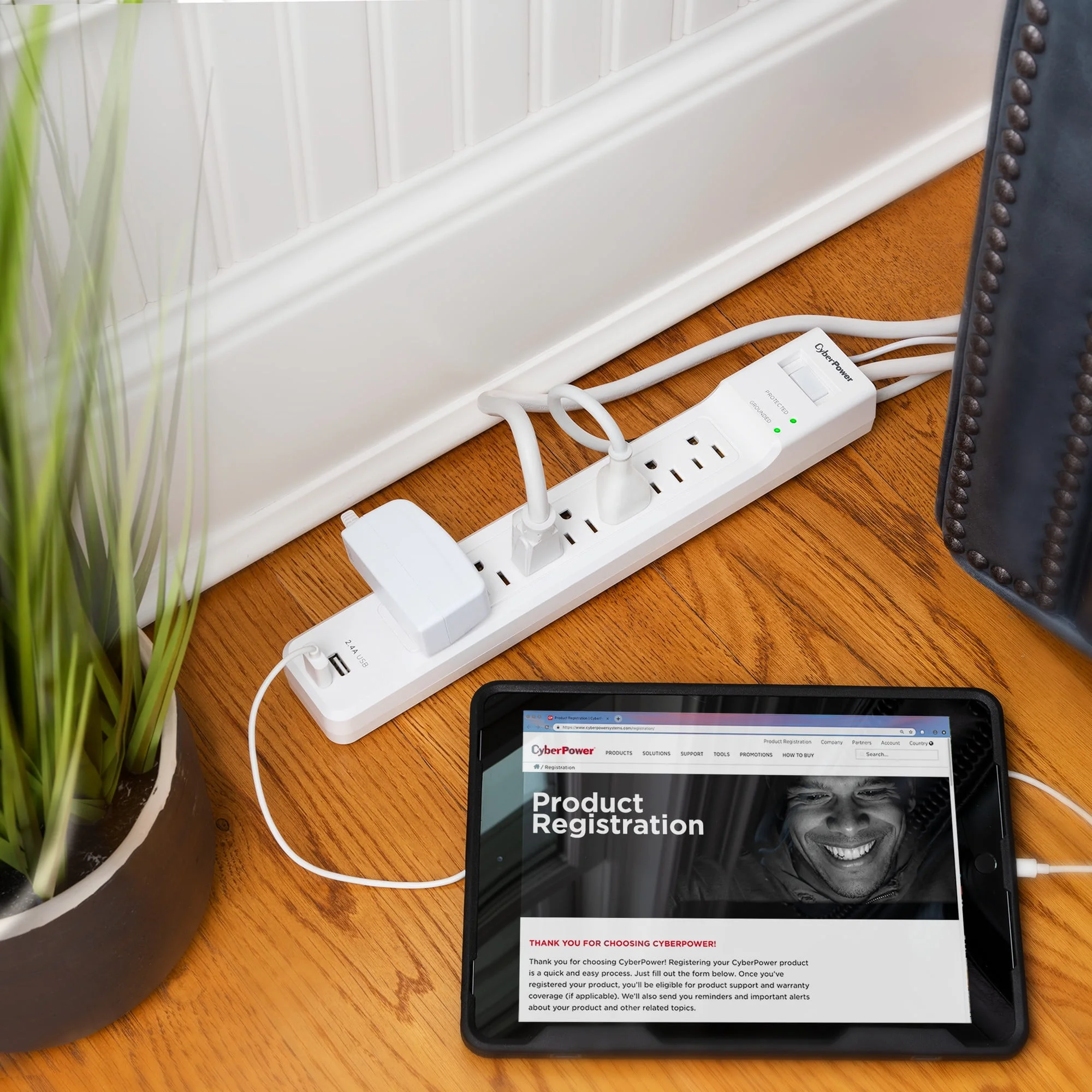This surge protector features a sleek white design that blends well with any environment and includes multiple outlets for convenience. Ideal for home or office use, it ensures that your devices remain safe from electrical hazards.